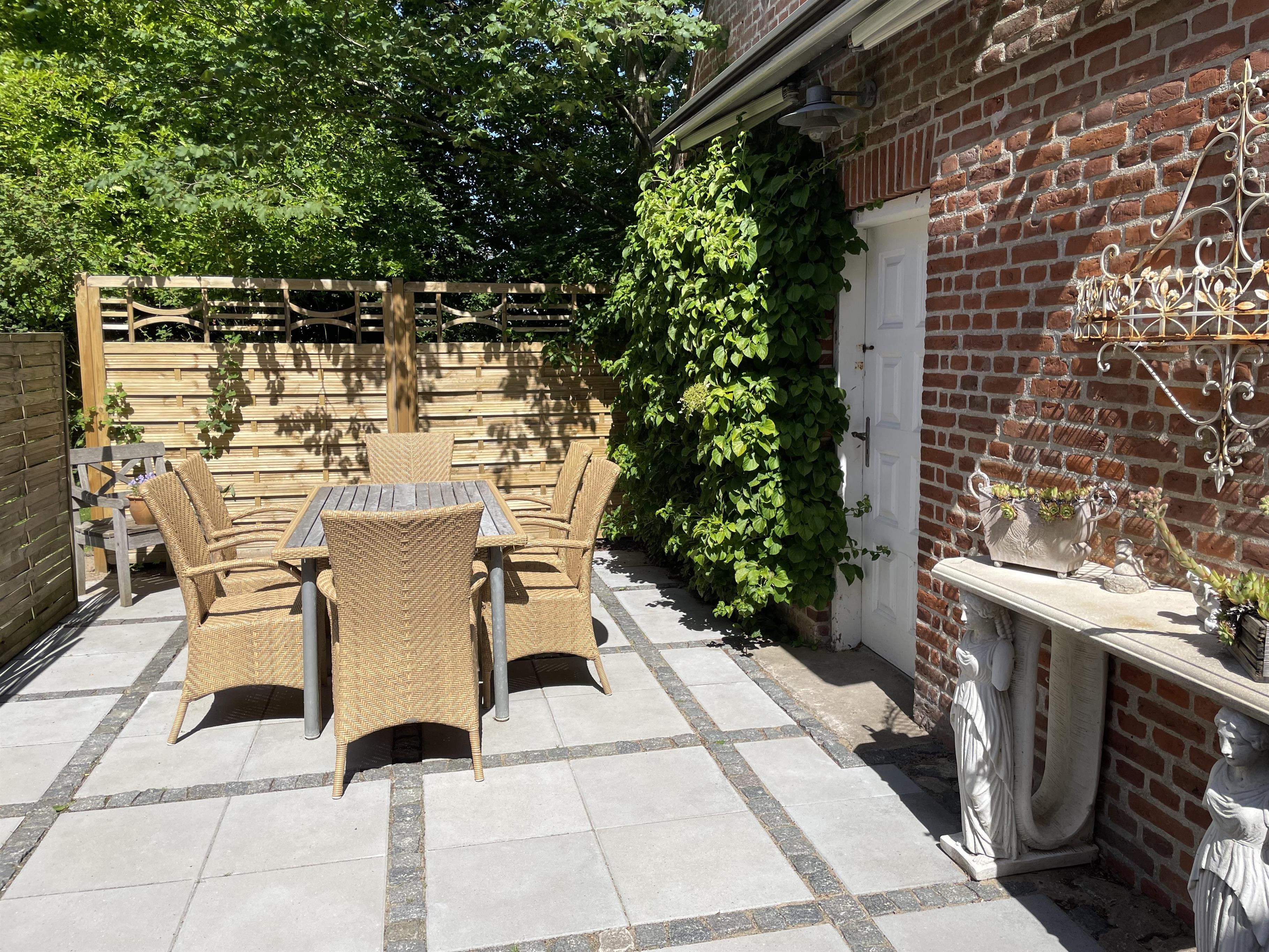 Til lejligheden hører eget haveområde. Her er der en hyggelig terrasse med gode havemøbler, så man kan sidde og slappe af og eventuelt grille sin mad, og der er en god græsplæne, som kan bruges til leg og anden havehygge.