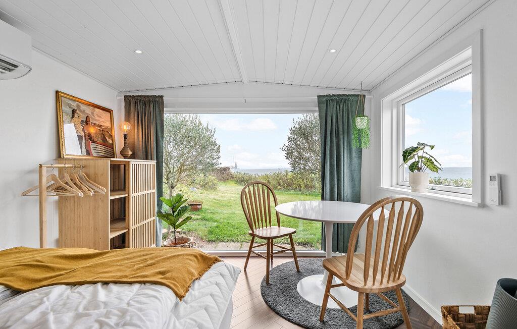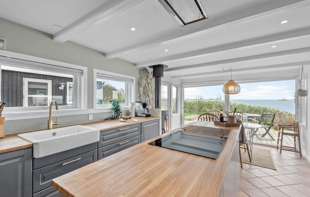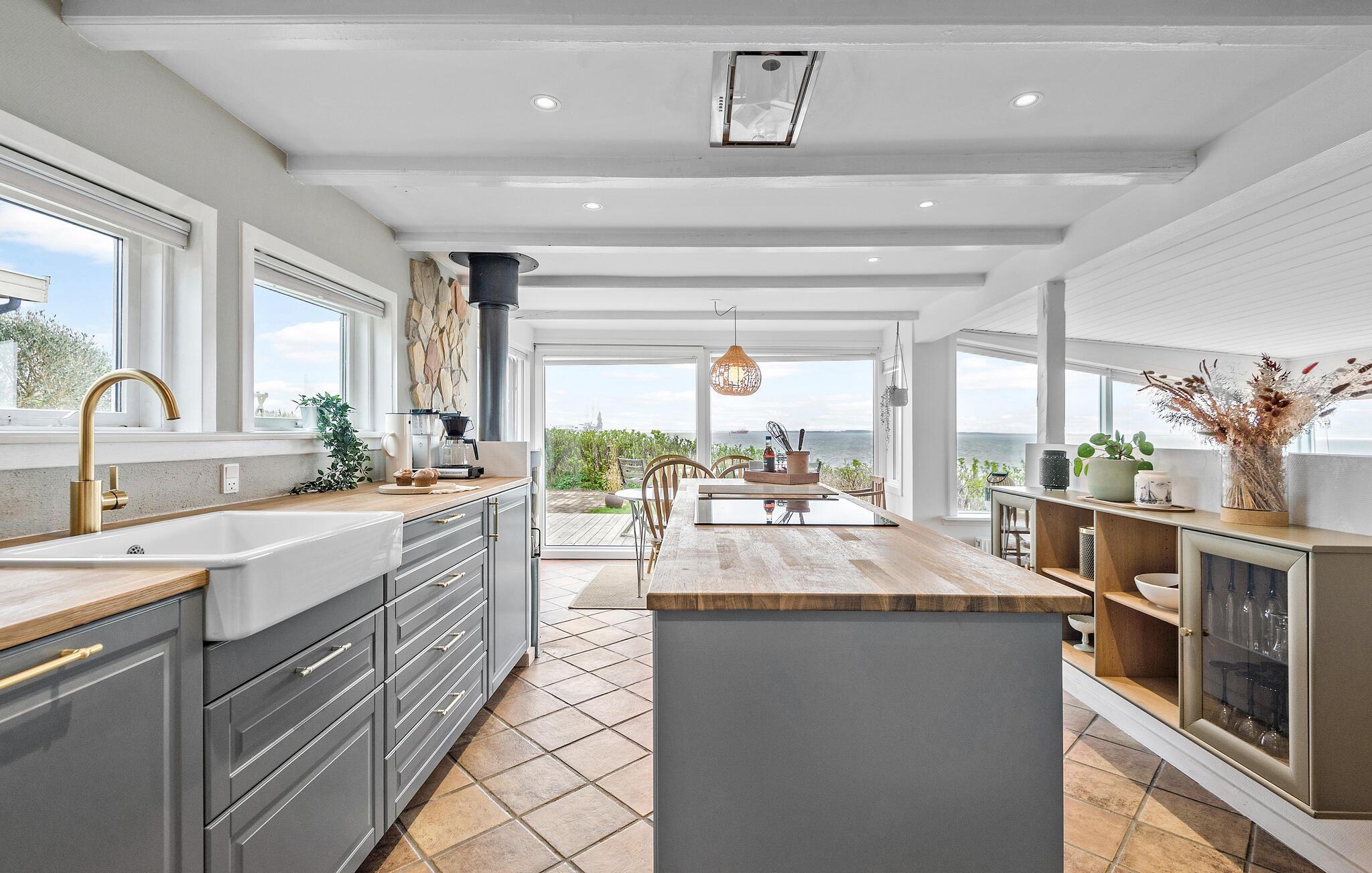 Med en drømmeagtig beliggenhed kun få skridt fra stranden byder dette feriehus jer velkommen til en ferie af første kaliber. De lyse værelser og den smagfulde, moderne indretning giver jer de optimale betingelser for skønne feriedage med familien. Huset er indrettet med øje for, at I kan nyde den unikke udsigt, hvad enten I laver mad sammen, spiser foran de store panoramavinduer eller slapper af i den indbydende sofaafdeling. Tænd op i brændeovnen på kølige dage, sæt jer godt til rette og lyt til flammernes knitren og havets bølger, der suser svagt i baggrunden.