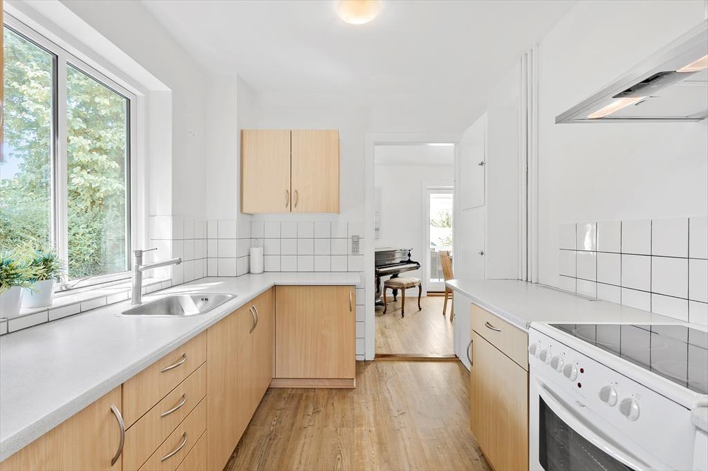 Træd ind i dette rummelige sommerhus, som strækker sig over to plan med hvidmalede vægge og lofter, der skaber en lys og indbydende atmosfære. I den stilfulde stue kan du lade dig betage af tonerne fra flyglet eller varme dig ved brændeovnen, som fylder rummet med hygge på kølige dage. Stuen er desuden indrettet med en hyggelig spiseplads, hvor du kan samle familie og venner til måltider og brætspil. Fra stuen er der direkte adgang til en overdækket terrasse, hvor morgenkaffen kan nydes uanset vejret. Køkkenet er veludstyret, og der er god plads til fælles madlavning og hyggelige stunder.