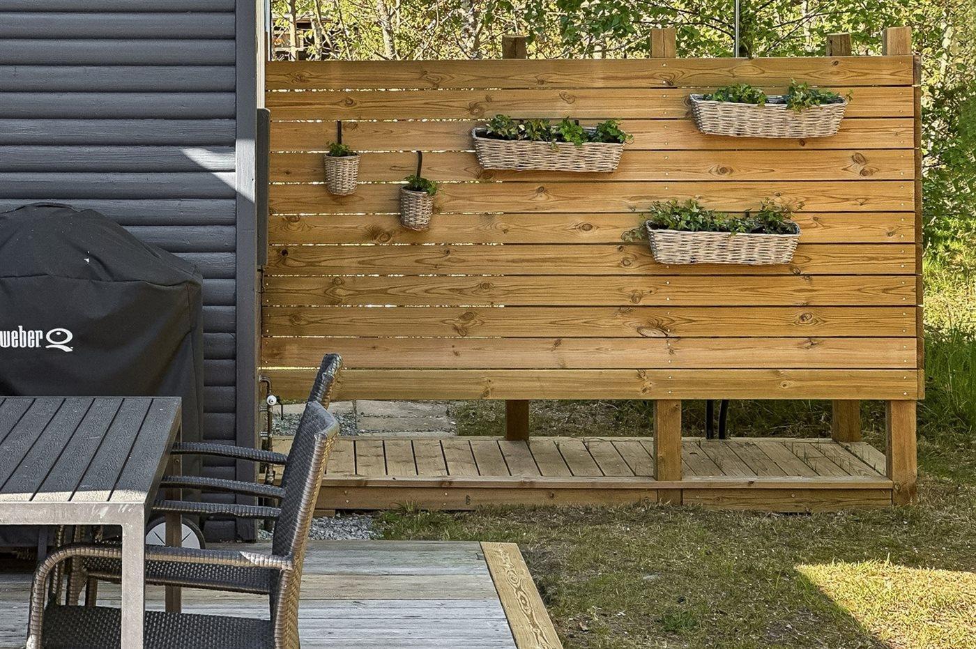 Dejligt og velholdt sommerhus i træ beliggende på en naturgrund med sand, lyng og fyrretræer samt bålsted. Stor og delvist overdækket terrasse (80 m² overdækket terrasse) med diverse havemøbler, kuglegrill (til kul) og gasgrill.