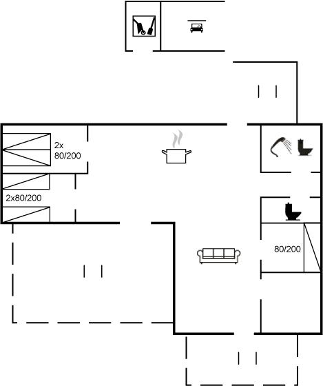 Der er i alt 3 soveværelser. Sovepladserne fordeler sig på: 2 sovepladser i dobbeltseng. 4 sovepladser i enkeltsenge.