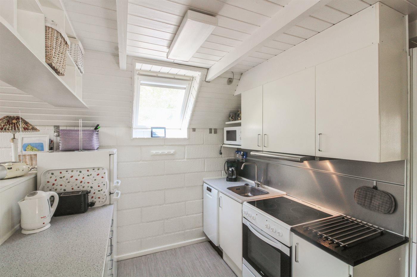 Køkkenet er udstyret med 1 køleskab. Der er 4 keramiske kogeplader, varmluftovn, mikrobølgeovn samt opvaskemaskine.