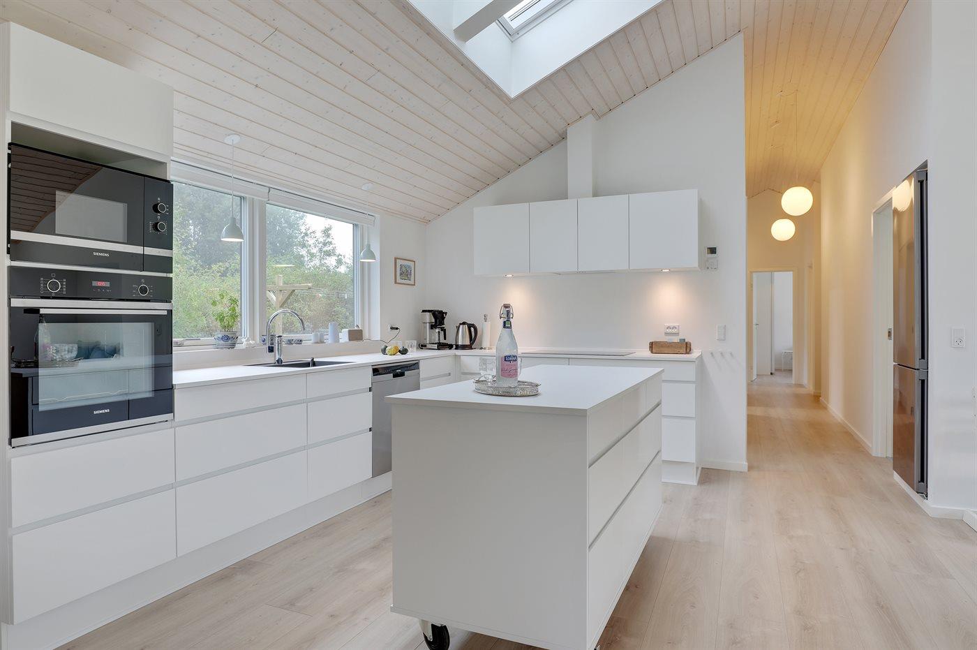 Køkkenet er udstyret med 1 køleskab. Der er 4 induktionskogeplader, varmluftovn, mikrobølgeovn samt opvaskemaskine.