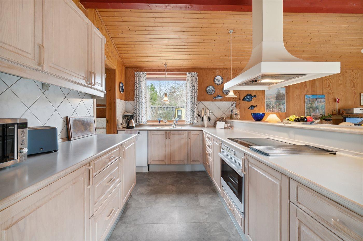 Køkkenet er udstyret med 1 køleskab. Der er 4 keramiske kogeplader, varmluftovn, mikrobølgeovn samt opvaskemaskine.