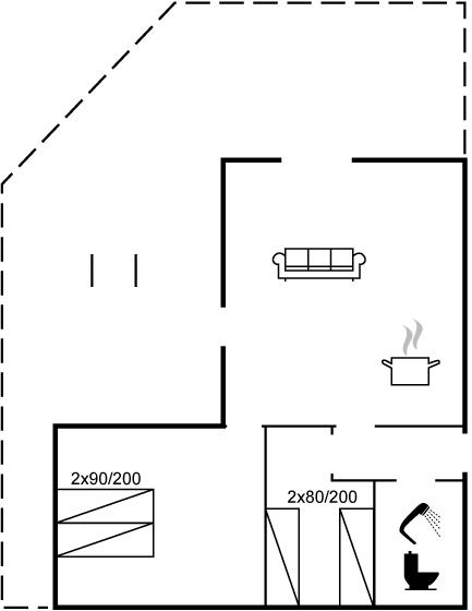 Der er i alt 2 soveværelser. Sovepladserne fordeler sig på: 2 sovepladser i dobbeltseng. 2 sovepladser i enkeltsenge.