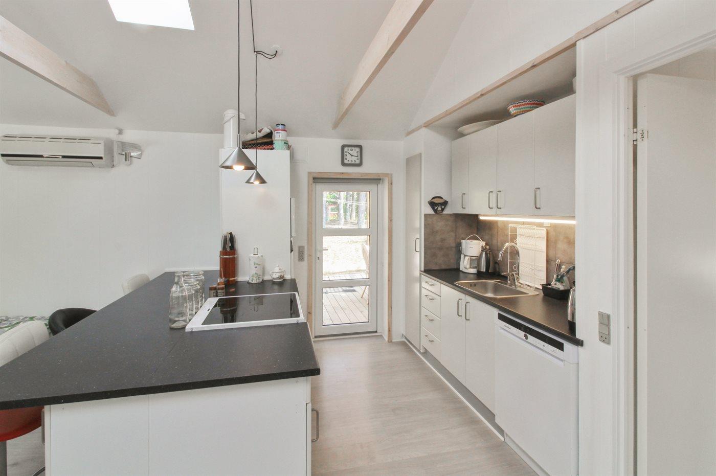 Køkkenet er udstyret med 3 køleskabe. Der er 4 keramiske kogeplader, varmluftovn, mikrobølgeovn samt opvaskemaskine.