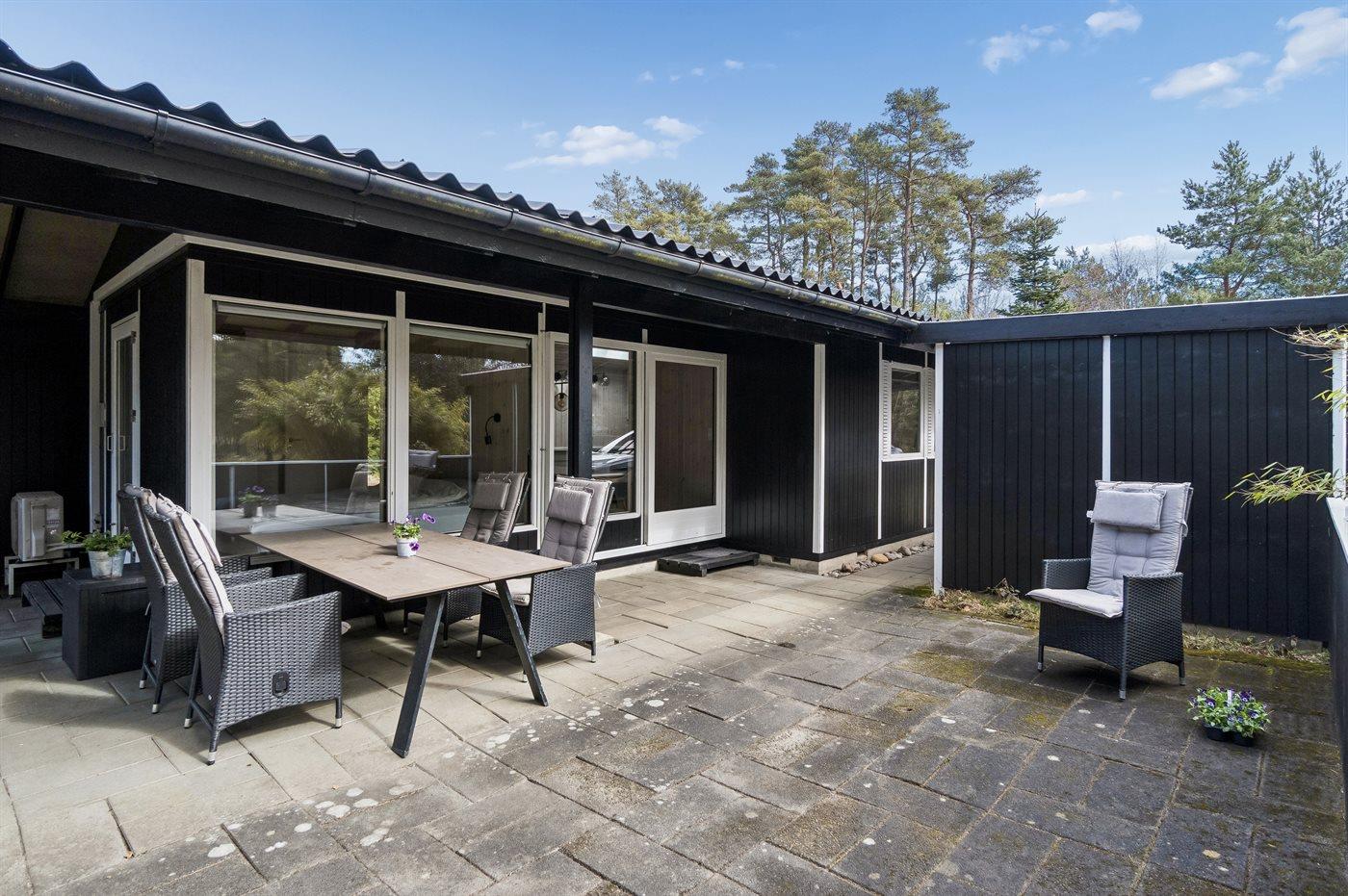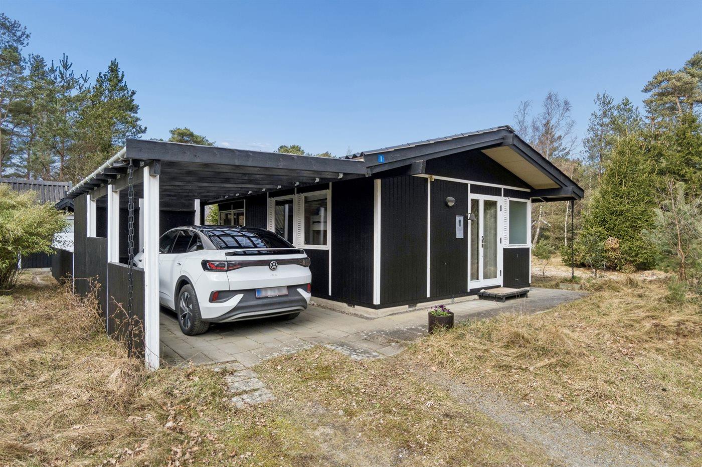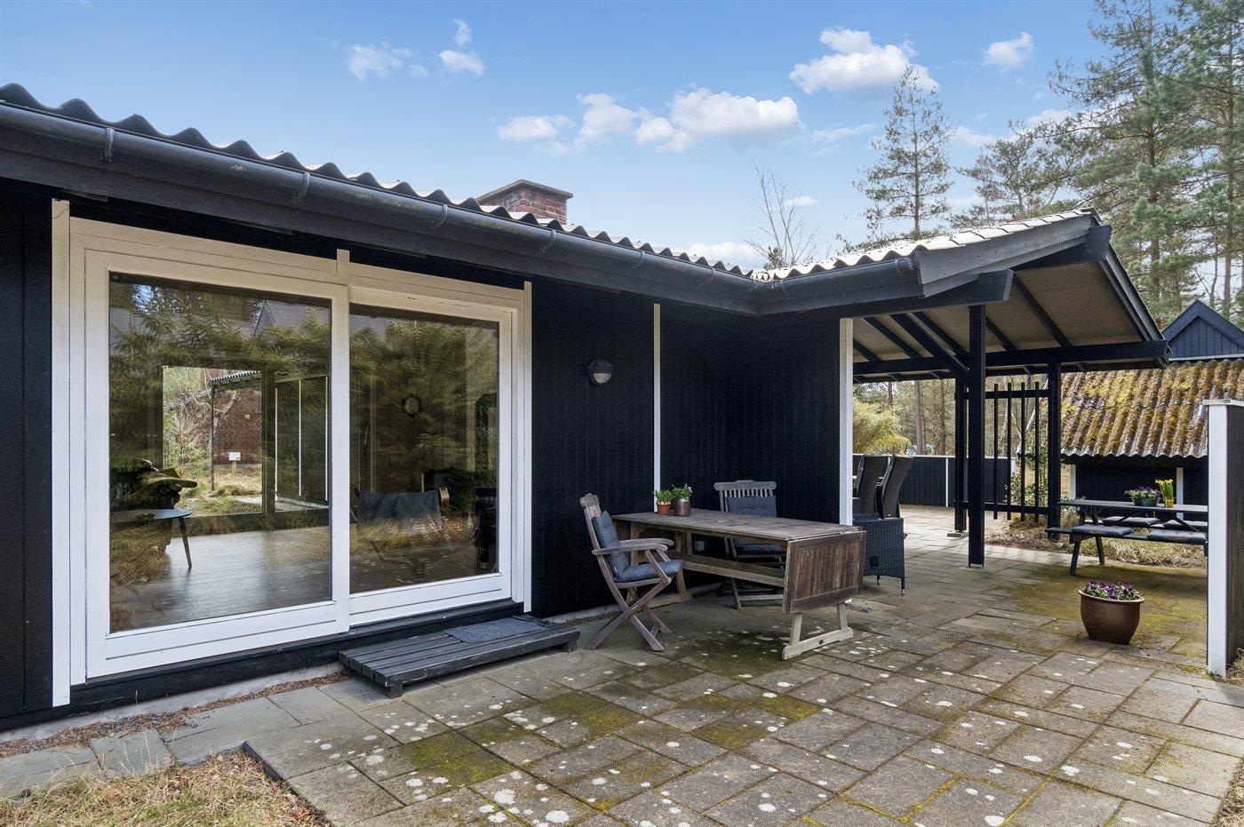 Ferieboligen er beliggende på en 1239 m² stor grund i skov/plantage. Der er 340 m til havet. Nærmeste forretning er beliggende i en afstand af 3000 m. Grill til rådighed. Der er carport til rådighed. Parkering ved ferieboligen.