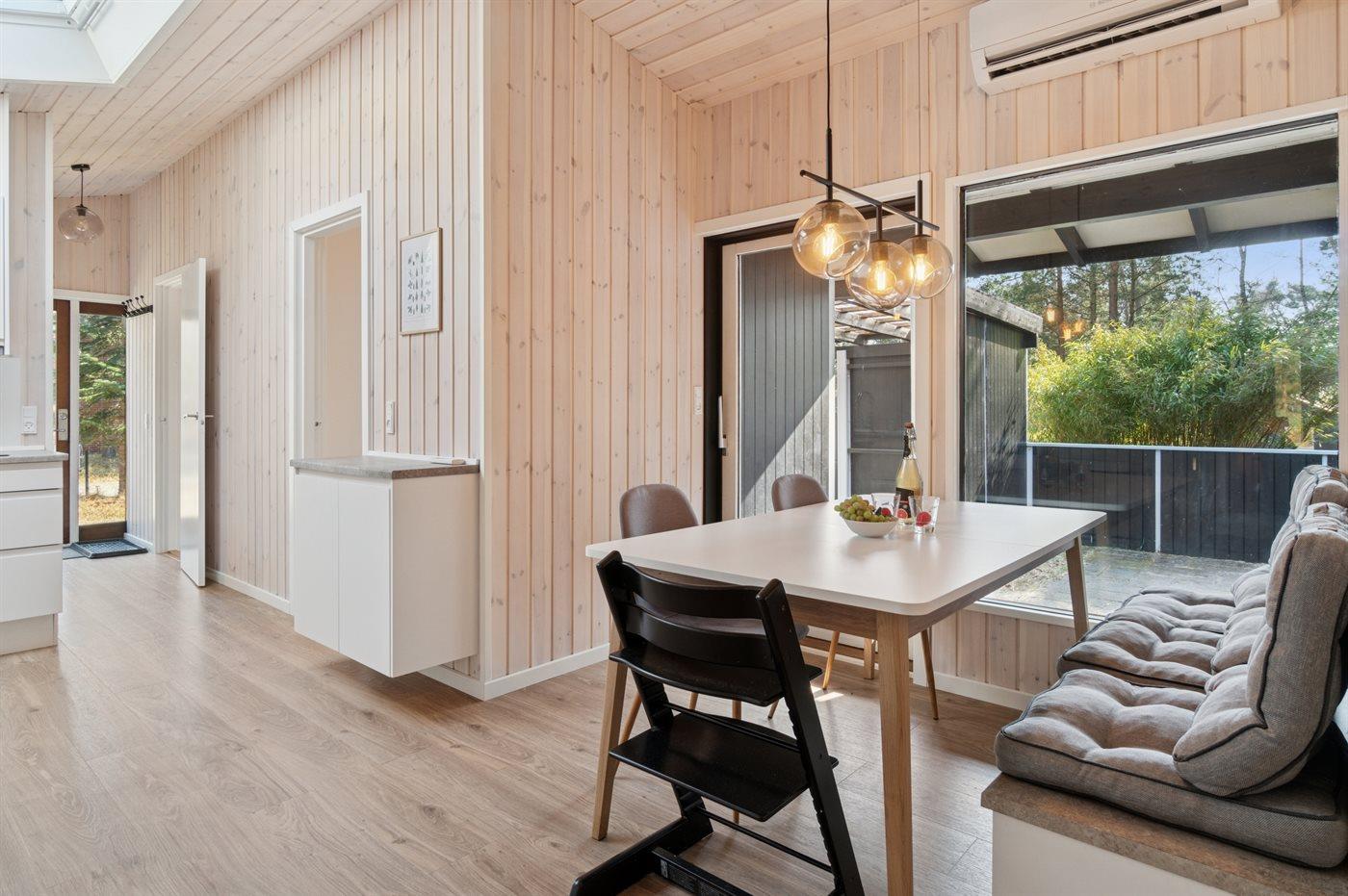 Feriehuset ligger i skoven bag klitterne og er nyrenoveret i 2022. Rundt om huset finder du flere kroge på terrasserne, så du kan flytte efter solen. Ejer har været god til at beskære bevoksning, så det er muligt både at finde læ og sol.