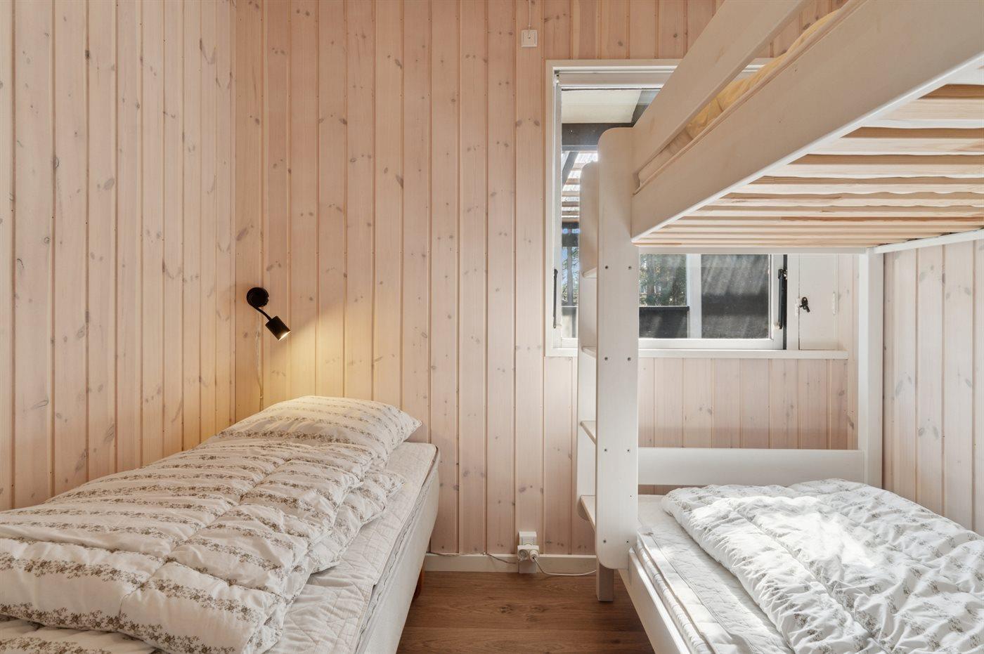 Der er i alt 3 soveværelser. Sovepladserne fordeler sig på: 4 sovepladser i dobbeltsenge. 1 soveplads i enkeltseng. 2 sovepladser i køjeseng.