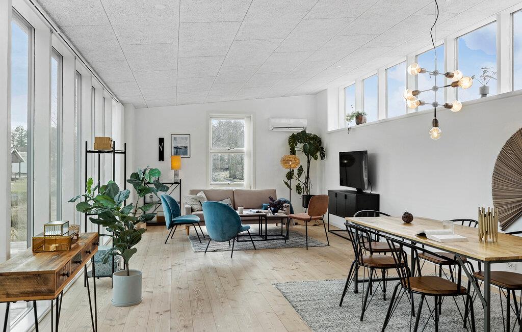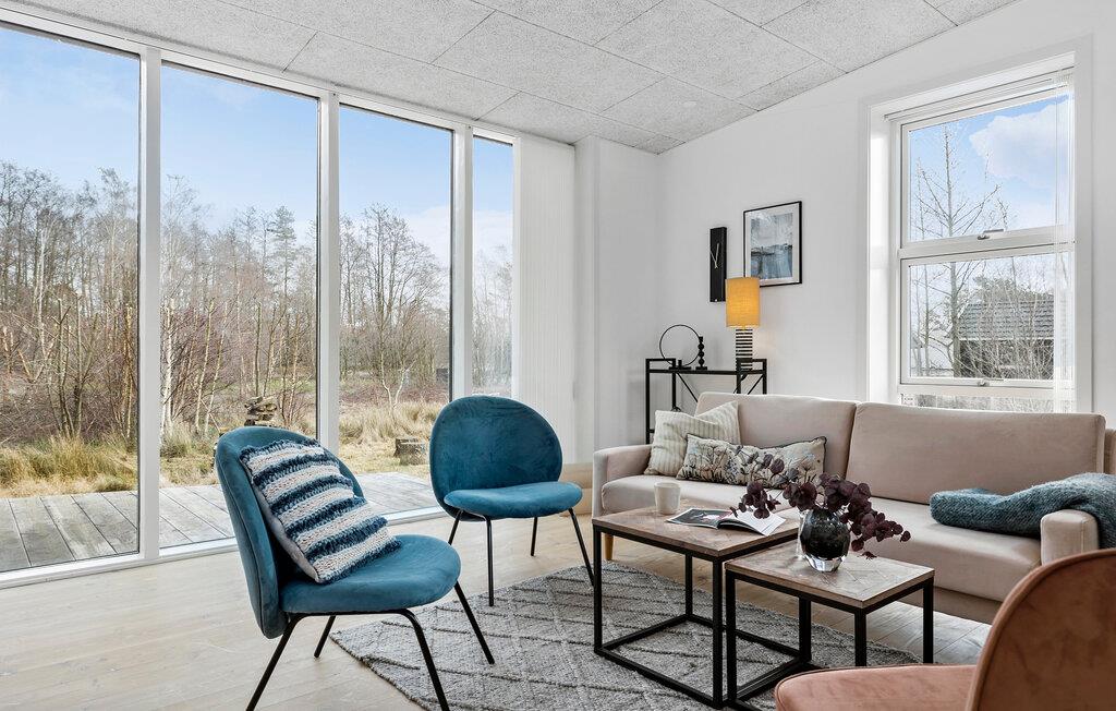 Lad turen gå til hele Danmarks solskinsø, hvor der ved den sydlige kyst venter jer en fantastisk ferie i rolige omgivelser i Sømarken. Huset er opført i en bæredygtig, arkitektonisk stil, der sammen med den stilrene indretning skaber en virkelig elegant boligoplevelse. Find jer godt til rette med en bog i sofaen og nyd udsigten gennem de store vinduespartier, der samtidig giver rummet et dejligt lysindfald i opholdsrummet.