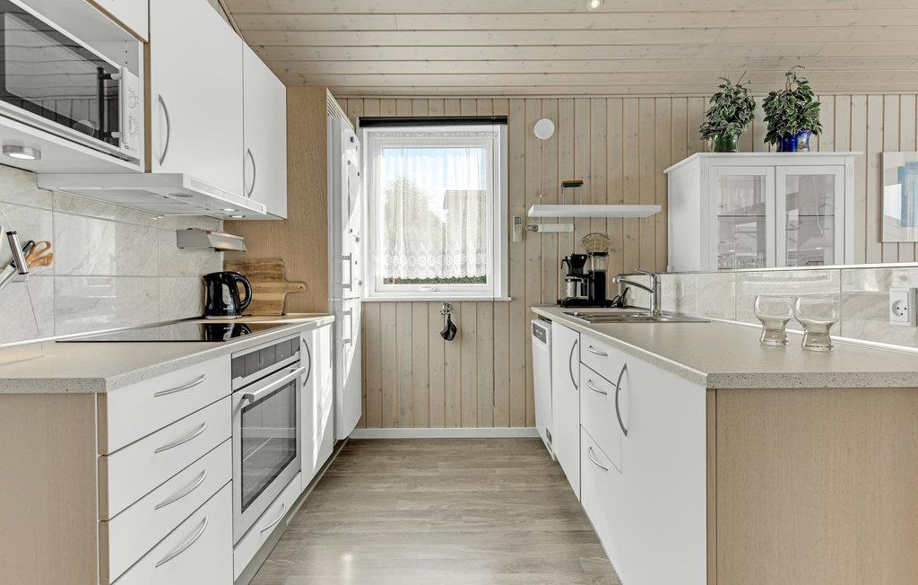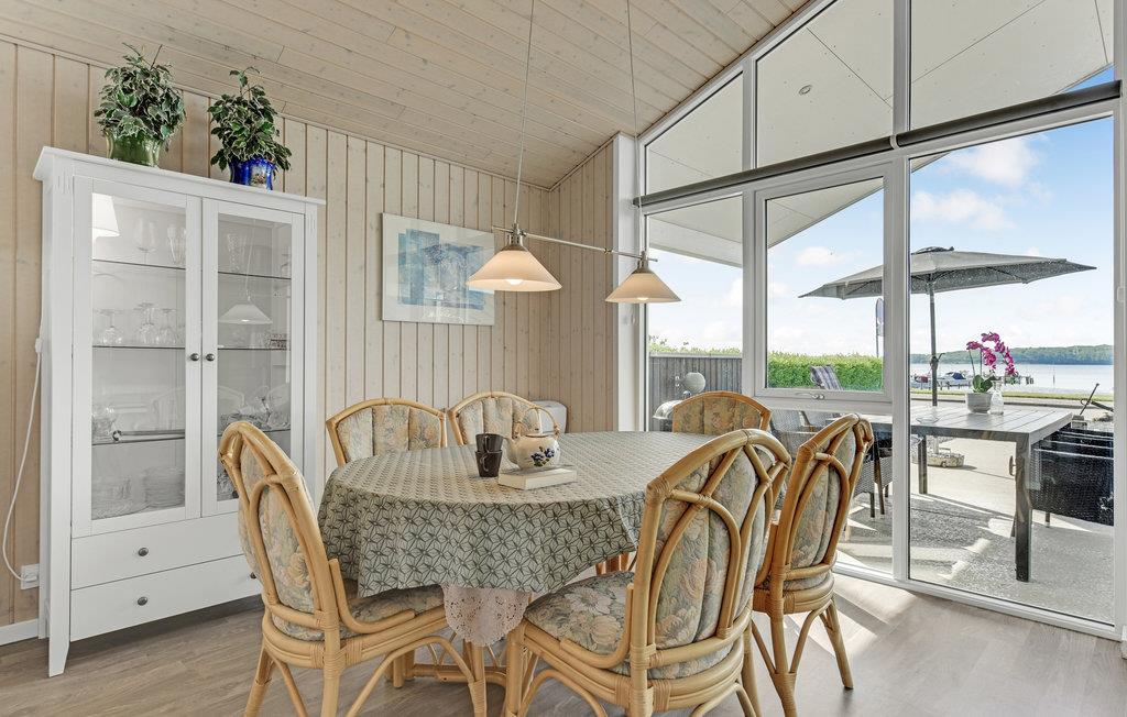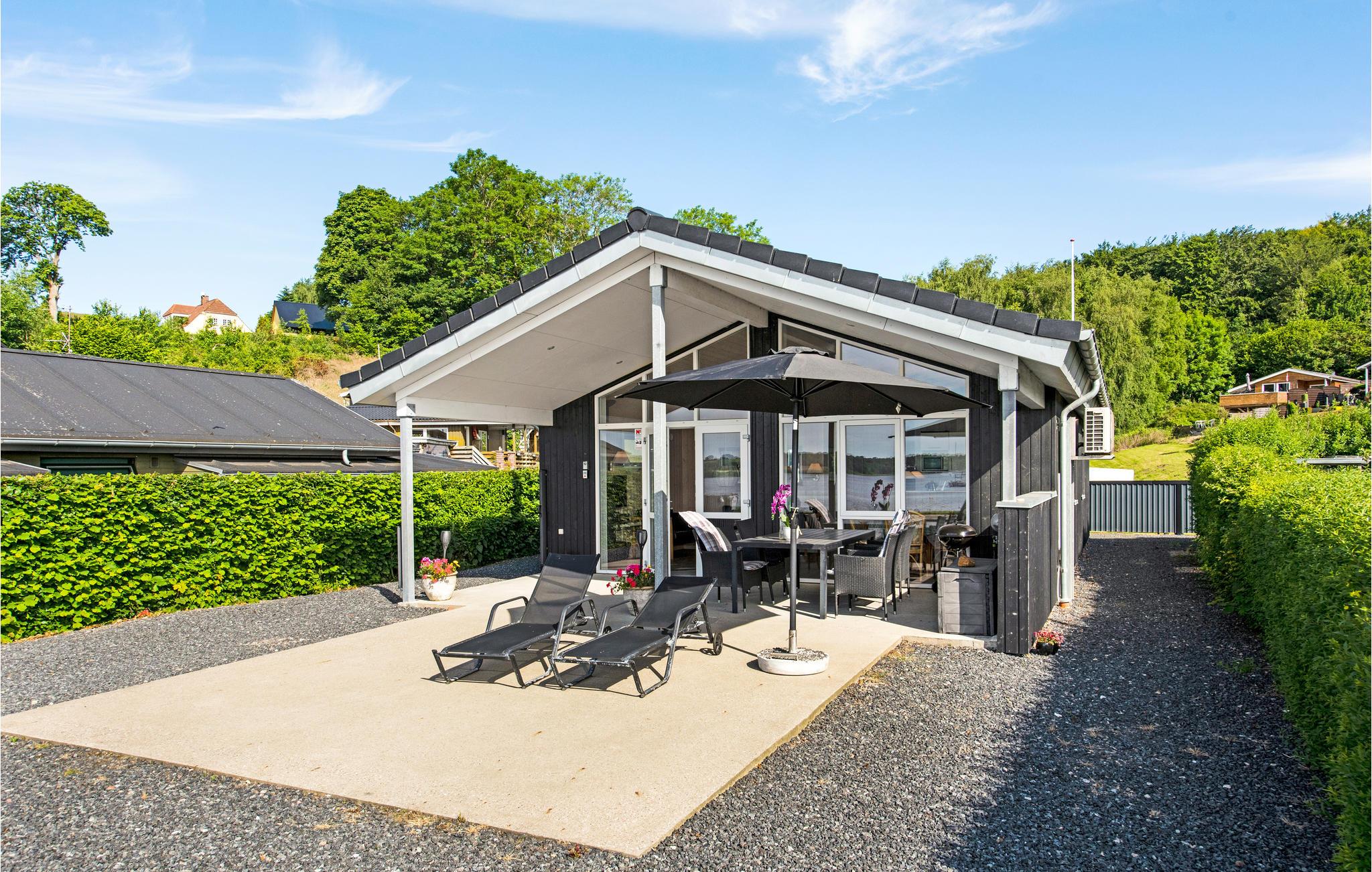 Kun 10 m fra vandet ligger dette skønne sommerhus fra 2016 med en fantastisk panoramaudsigt ud til Genner Bugt. Her er der al mulighed for en dejlig afslappende ferie. Huset er indrettet med tre gode soveværelser, hvor der er adgang til eget toilet fra det ene værelse. Køkkenet og stuen ligger i åben forbindelse, og det store vinduesparti giver et vidunderligt blik ud på vandet, der ligger lige på den anden side af vejen. Huset har en bådbro, som deles med et andet sommerhus. På den overdækkede terrasse kan I nyde de lyse sommeraftener.