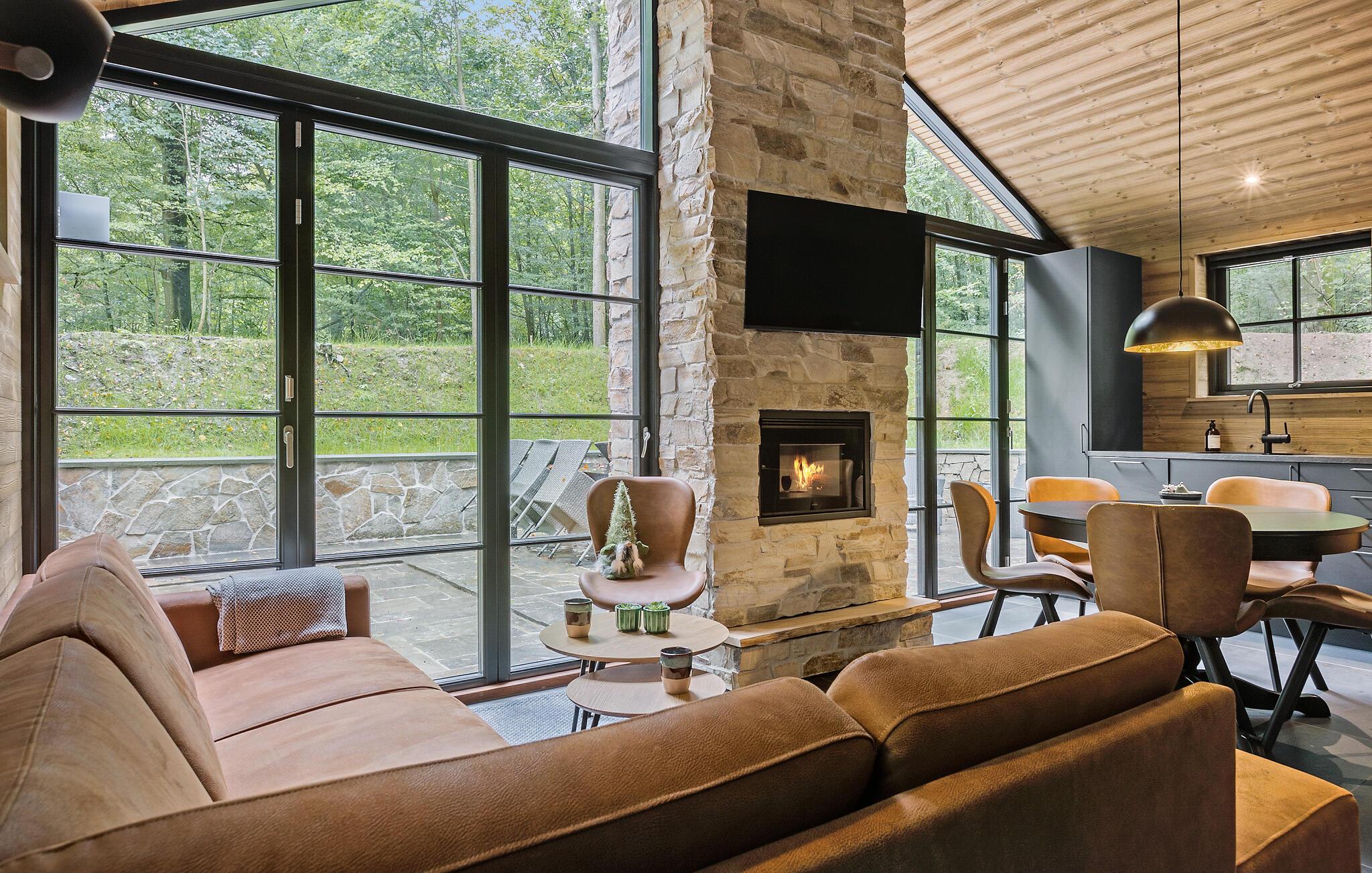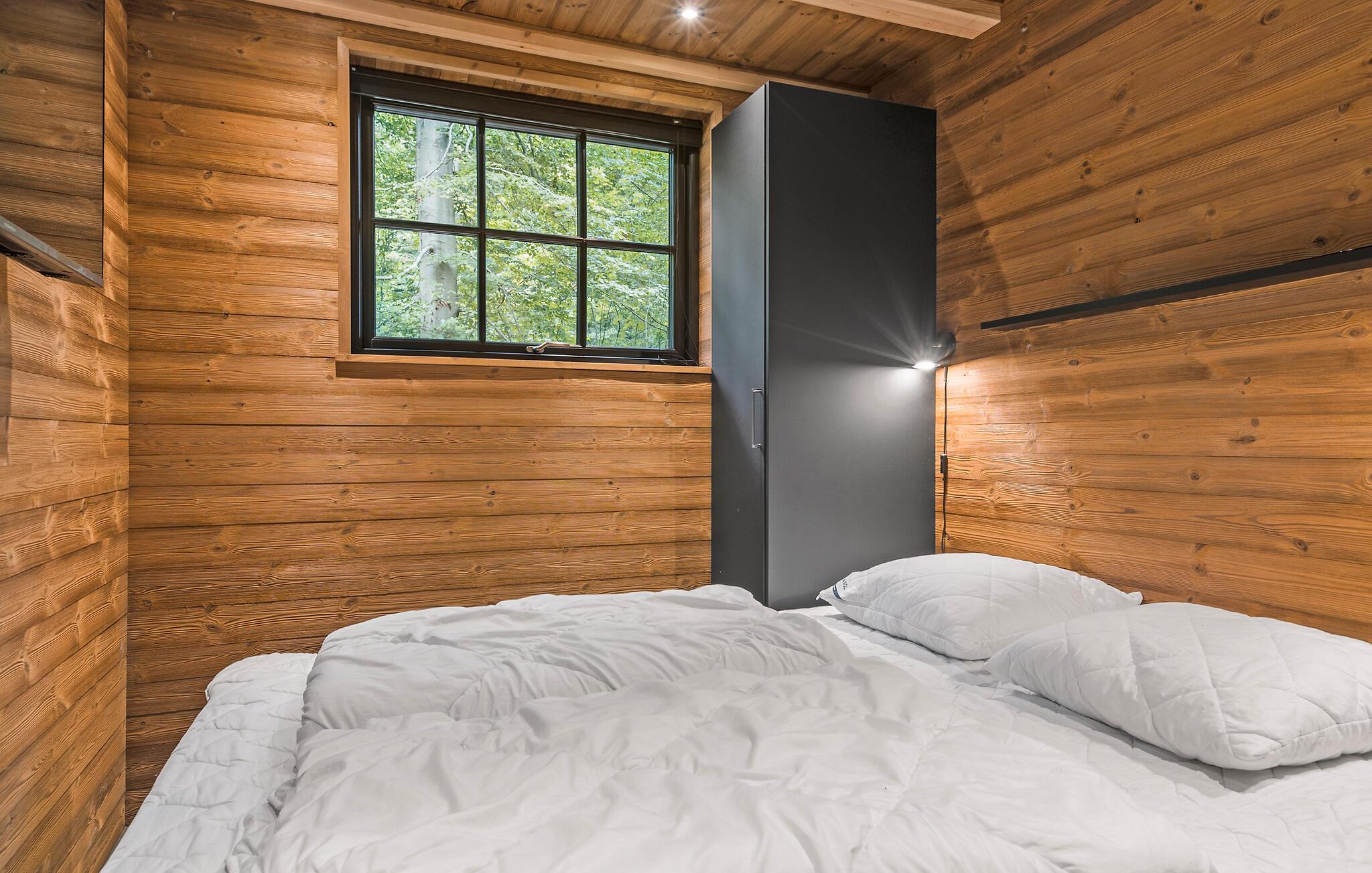 Nyd jeres ferie i dette stilfulde feriehus på en rummelig skovgrund.