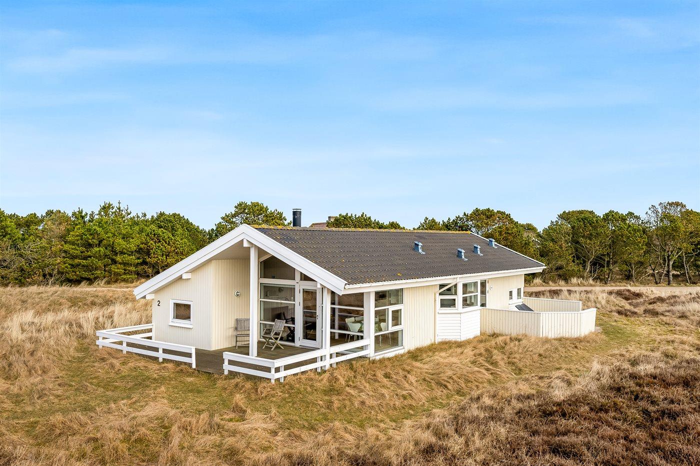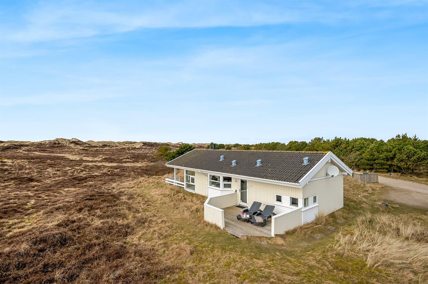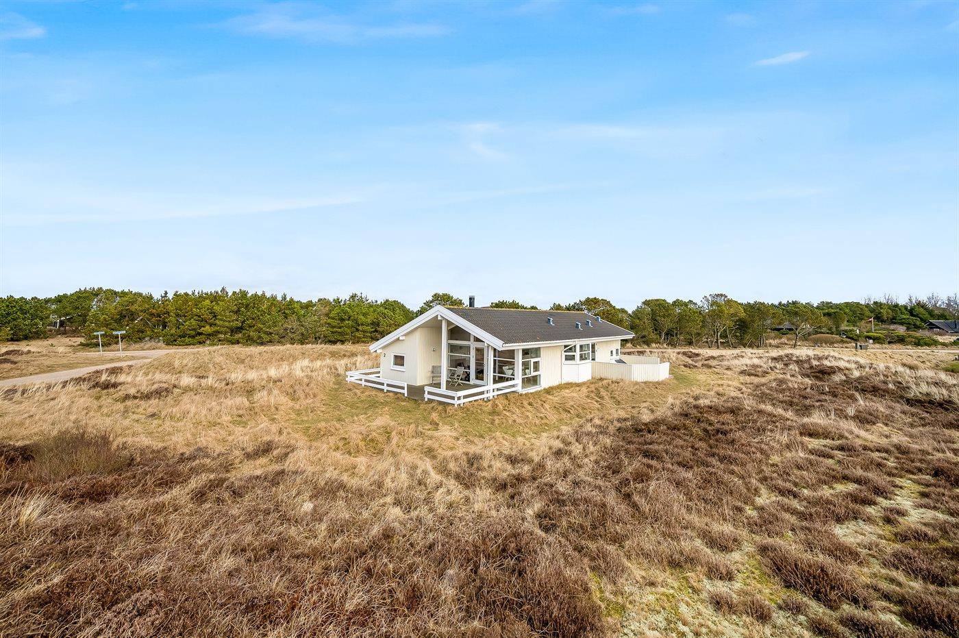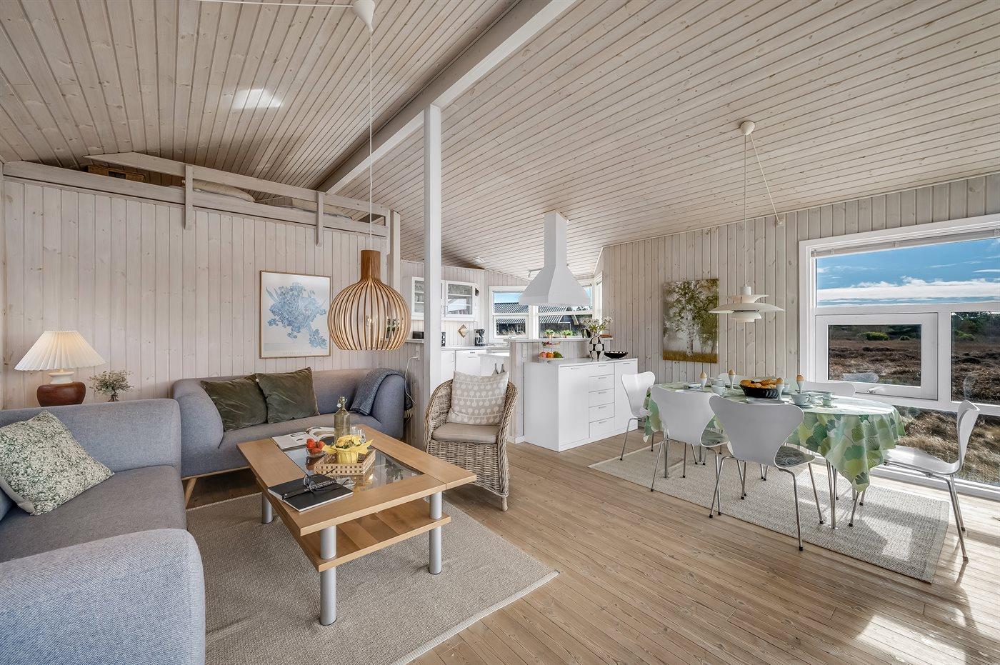 Virkelig skønt lyst feriehus med smagfuld og hyggelig indretning. Huset er meget smukt beliggende i kanten af store fredede natur- og klitarealer og indbyder til hygge og afslapning for hele familien. Der er 3 soverum, som fordeler sig på 2 værelser med dobbeltseng og 1 værelse med enkelt senge. Huset har derudover hems med 2 madrasser. Badeværelse med spa og sauna. Køkken med opvaskemaskine og mikroovn. Både åben og overdækket terrasse.