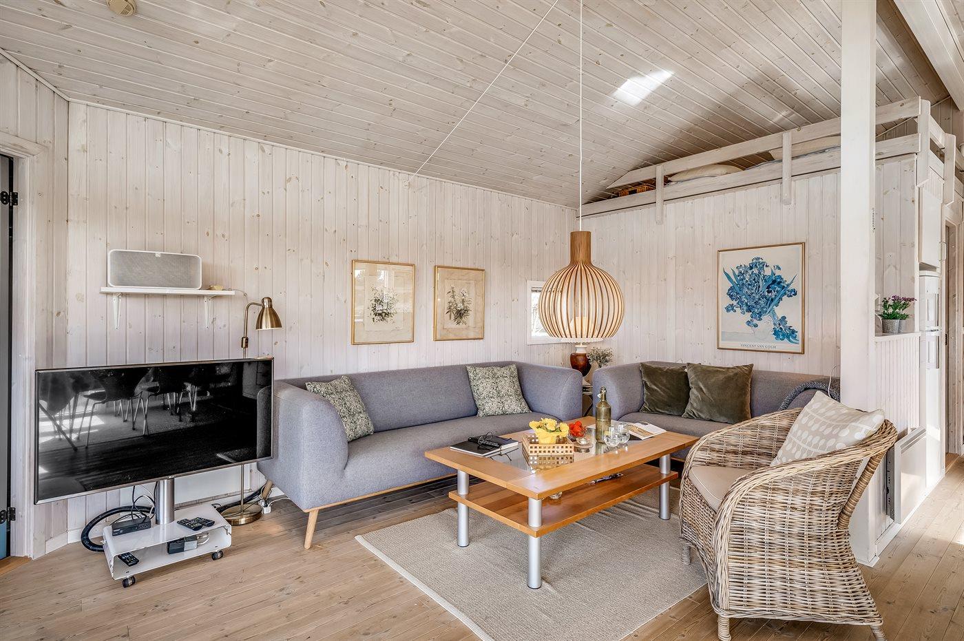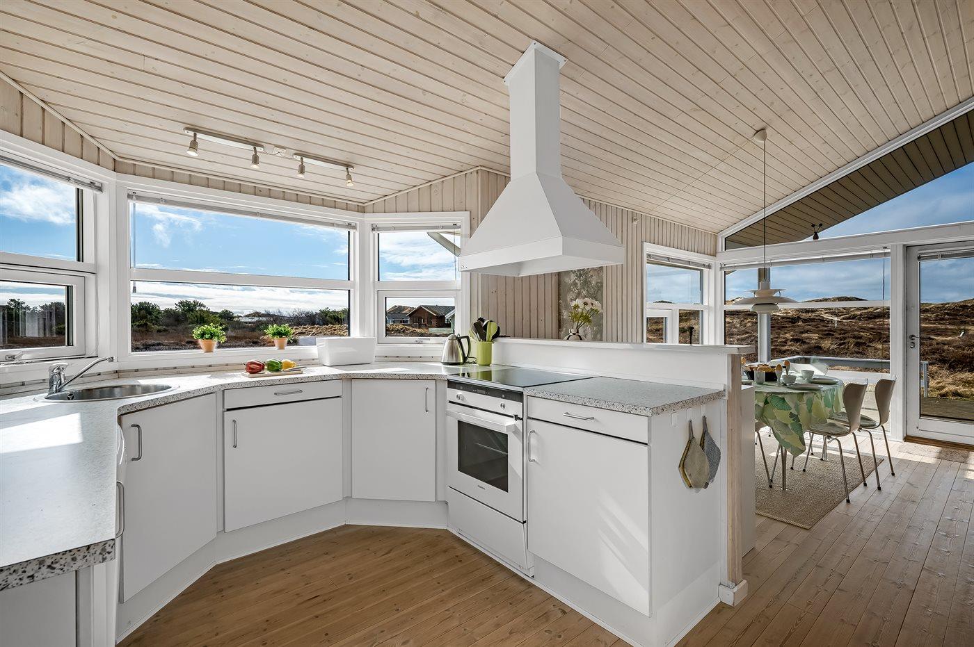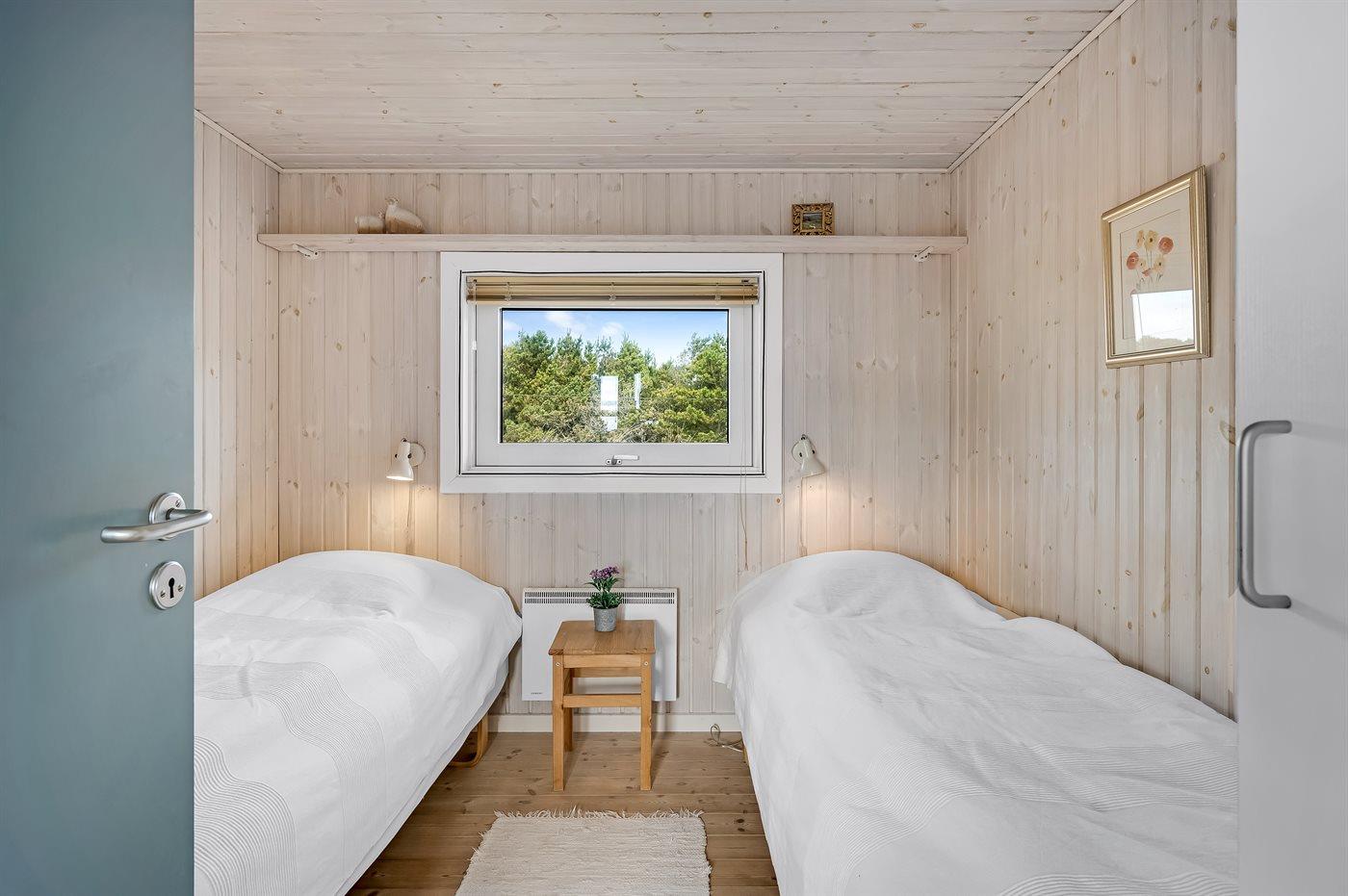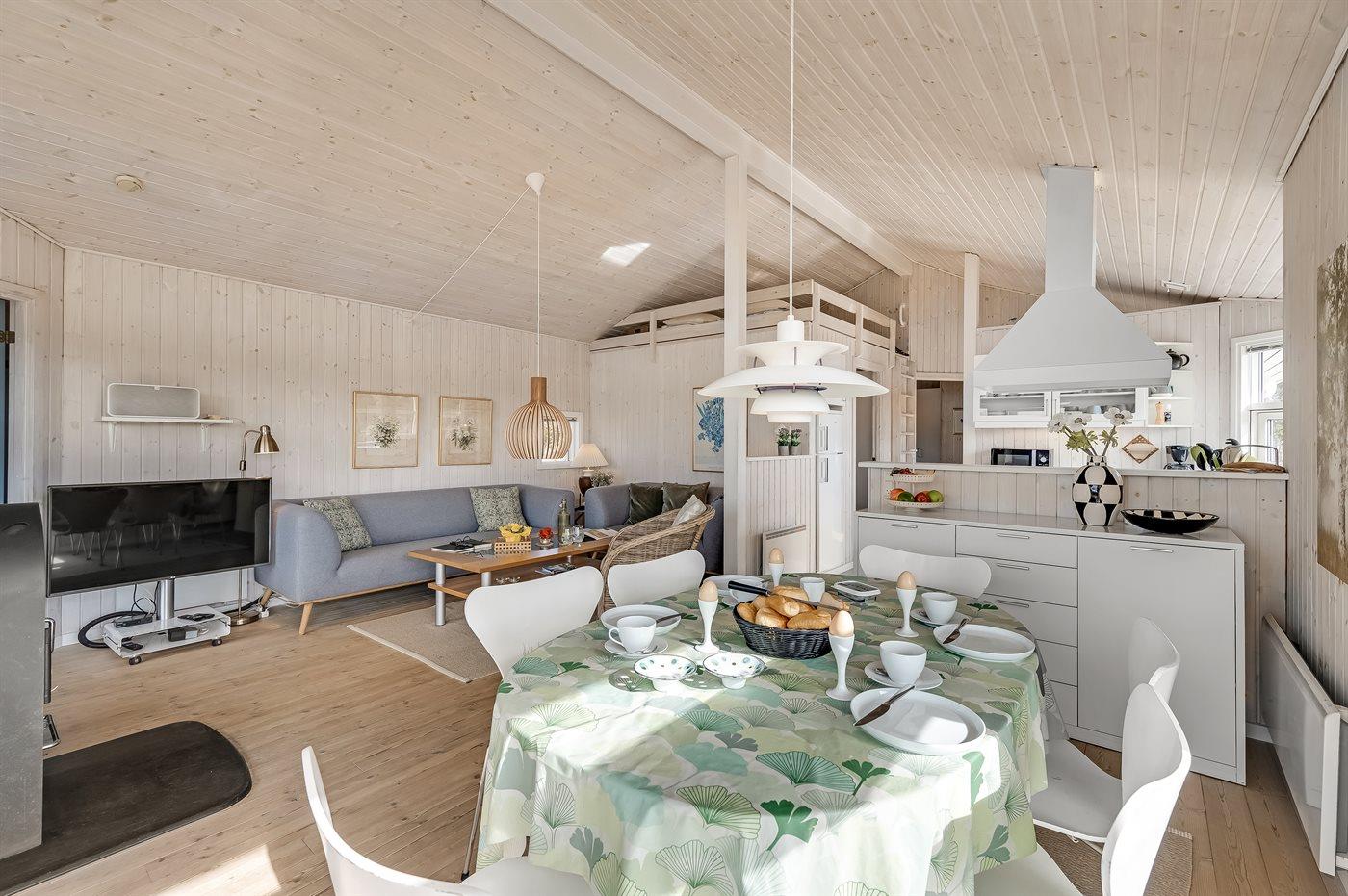 Virkelig skønt lyst feriehus med smagfuld og hyggelig indretning. Huset er meget smukt beliggende i kanten af store fredede natur- og klitarealer og indbyder til hygge og afslapning for hele familien. Der er 3 soverum, som fordeler sig på 2 værelser med dobbeltseng og 1 værelse med enkelt senge. Huset har derudover hems med 2 madrasser. Badeværelse med spa og sauna. Køkken med opvaskemaskine og mikroovn. Både åben og overdækket terrasse.