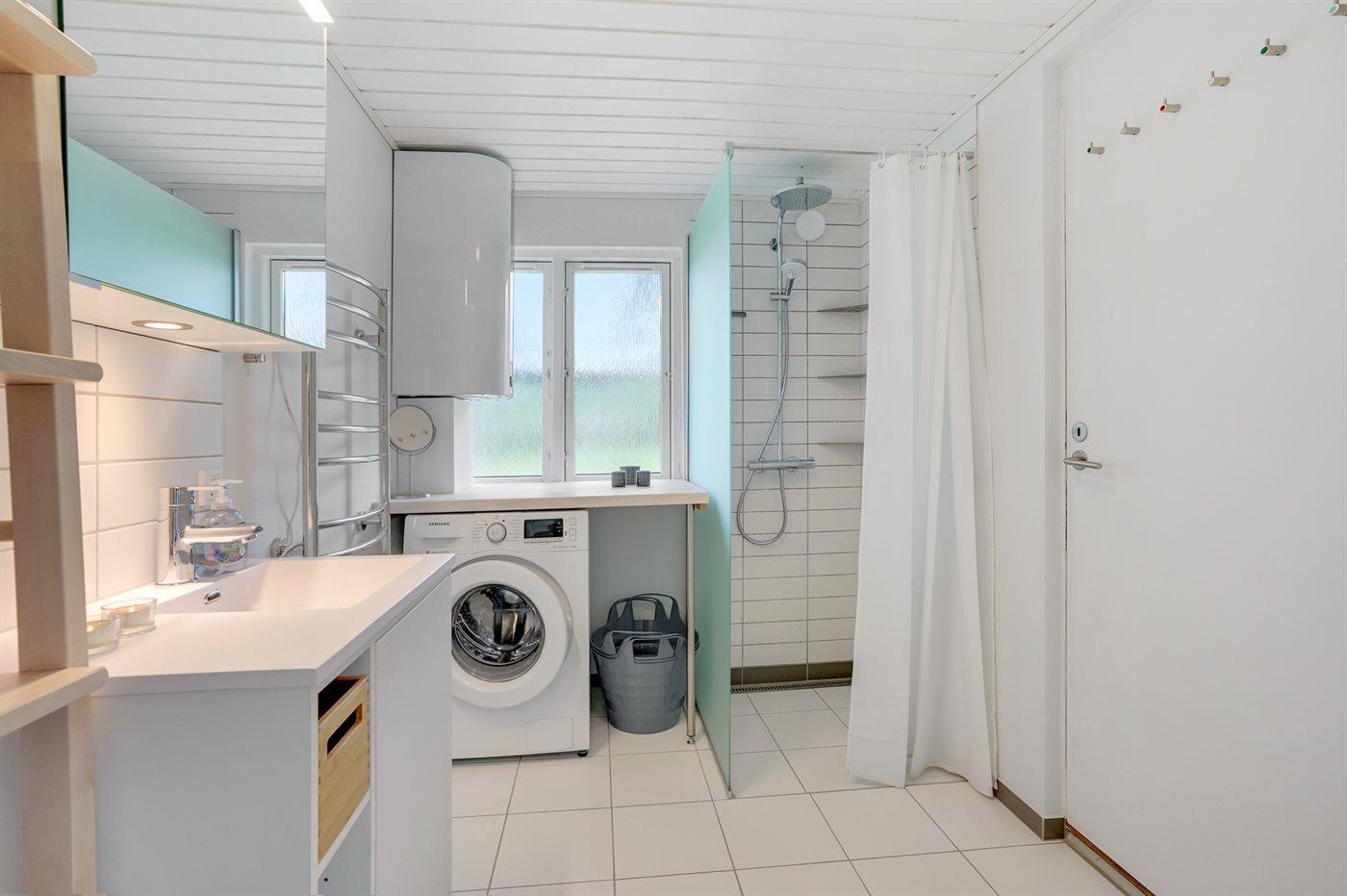 Der er 1 badeværelse med bruseniche og 1 toilet. I saunaen er der mulighed for afslapning.