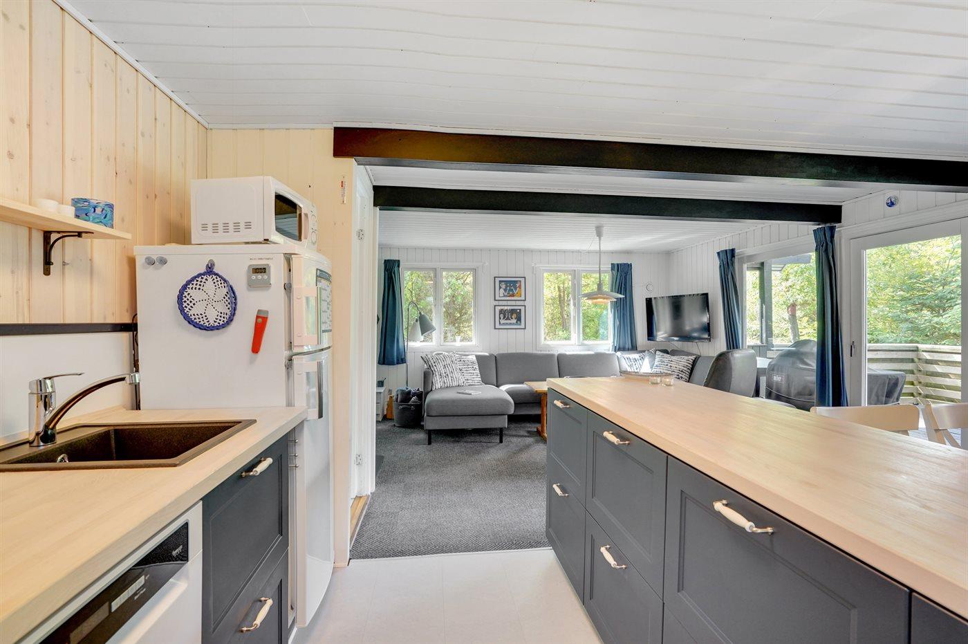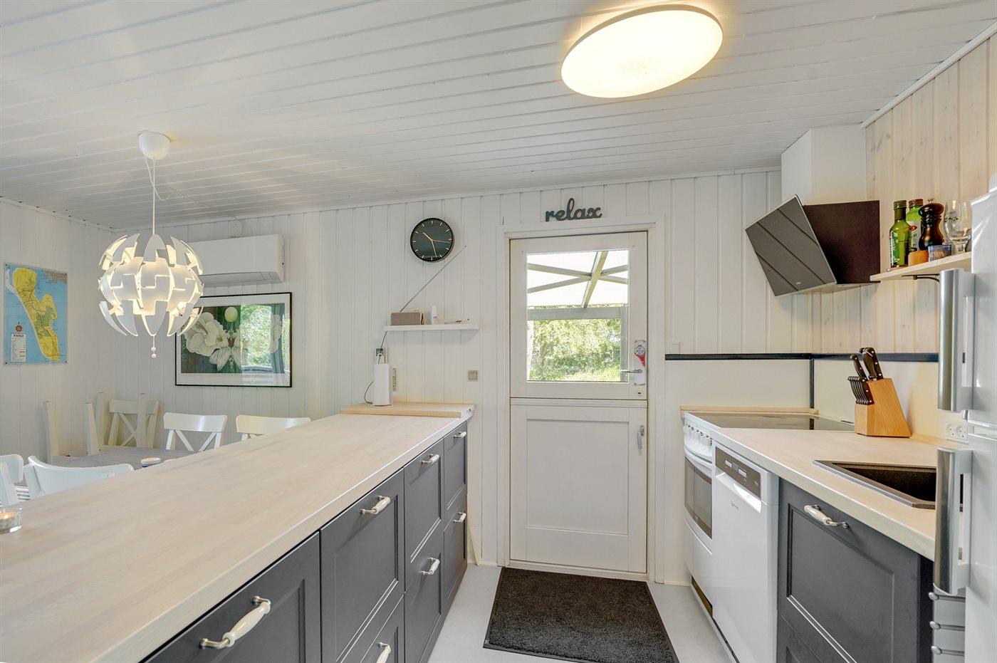 Køkkenet er udstyret med 1 køleskab. Der er 4 keramiske kogeplader, varmluftovn, mikrobølgeovn samt opvaskemaskine.