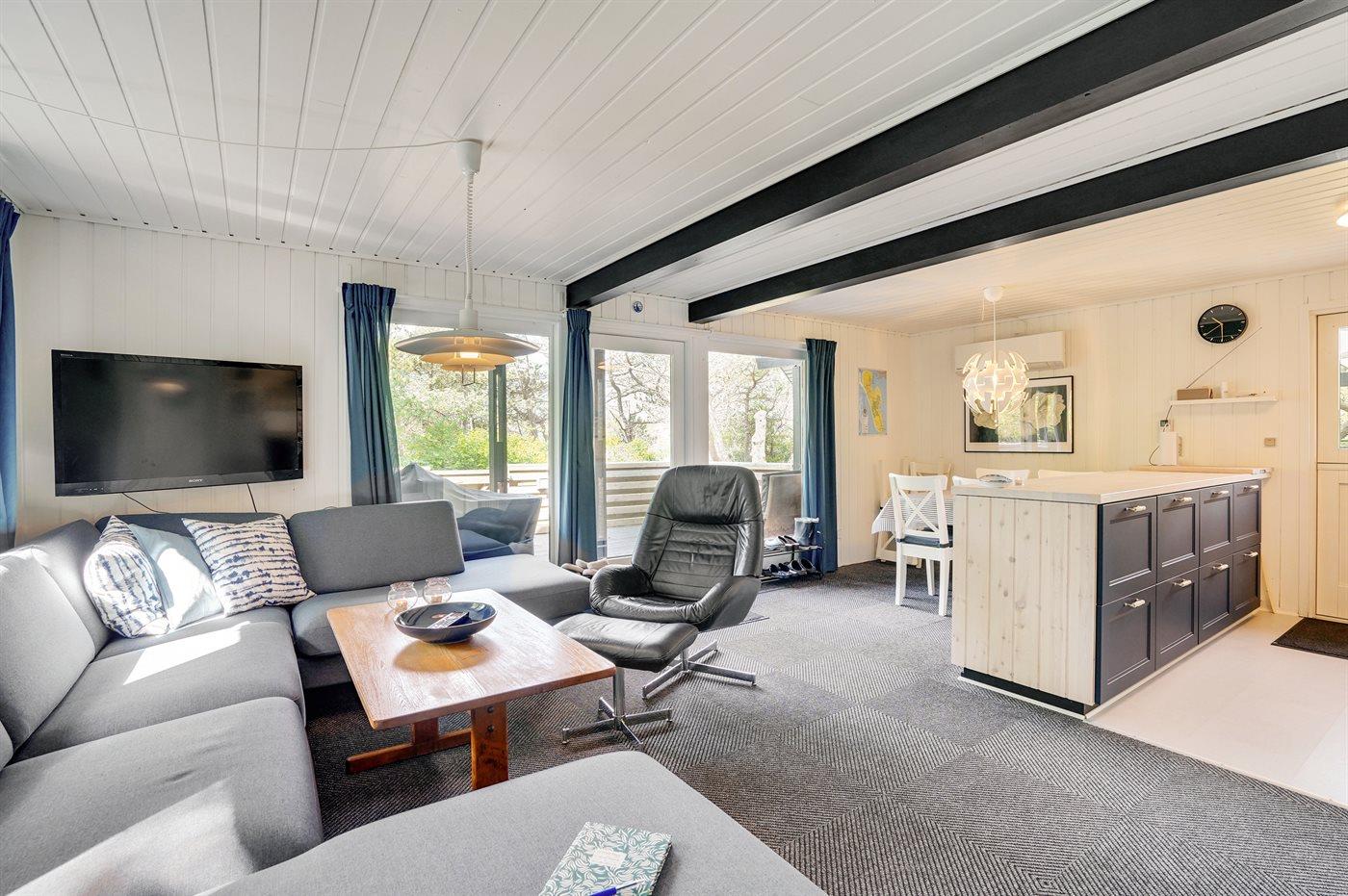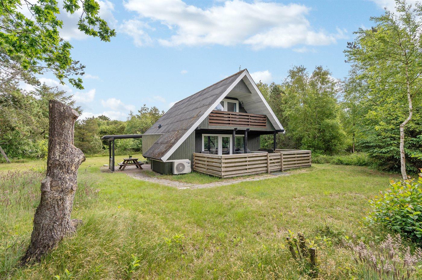 Et pænt og rummeligt sommerhus, bygget i 2-plan med en rolig og ugenert beliggenhed – på en stor grund med plads til boldspil og leg. Til huset hører et delvist overdækket og lukket terrasseareal, hvor I kan nyde ferien med en god bog eller et måltid i det fri.