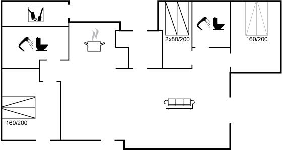 Der er 2 badeværelser med bruseniche og 2 toiletter. Der er gulvvarme på 2 badeværelser.