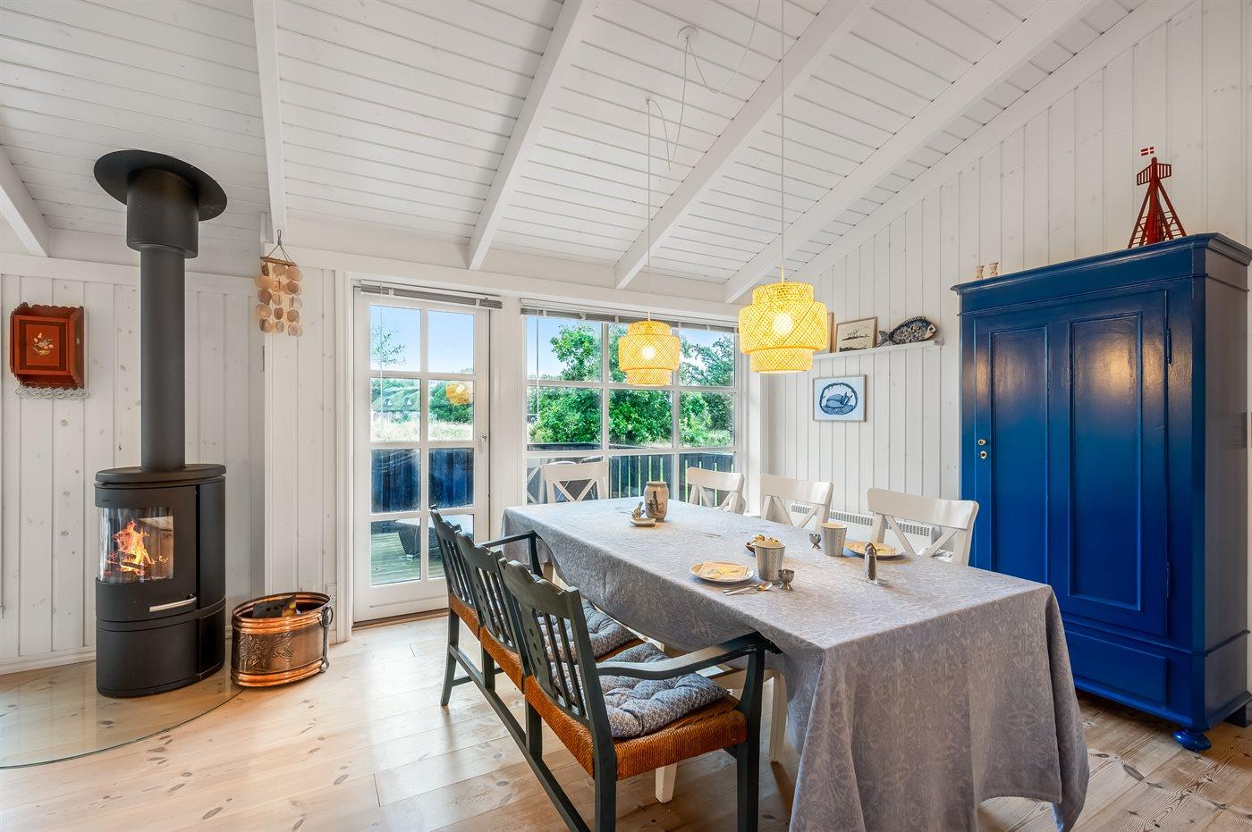 Sommerhuset egner sig til 6 personer. Ferieboligen er på 98 m² og er bygget i 2012. Det er tilladt at medbringe 1 husdyr. Ferieboligen er udstyret med energibesparende varmepumpe. Ferieboligen har vaskemaskine. Frysekapacitet på 60 liter. Der er desuden brændeovn. Til de små er der 1 stk. barnestol.