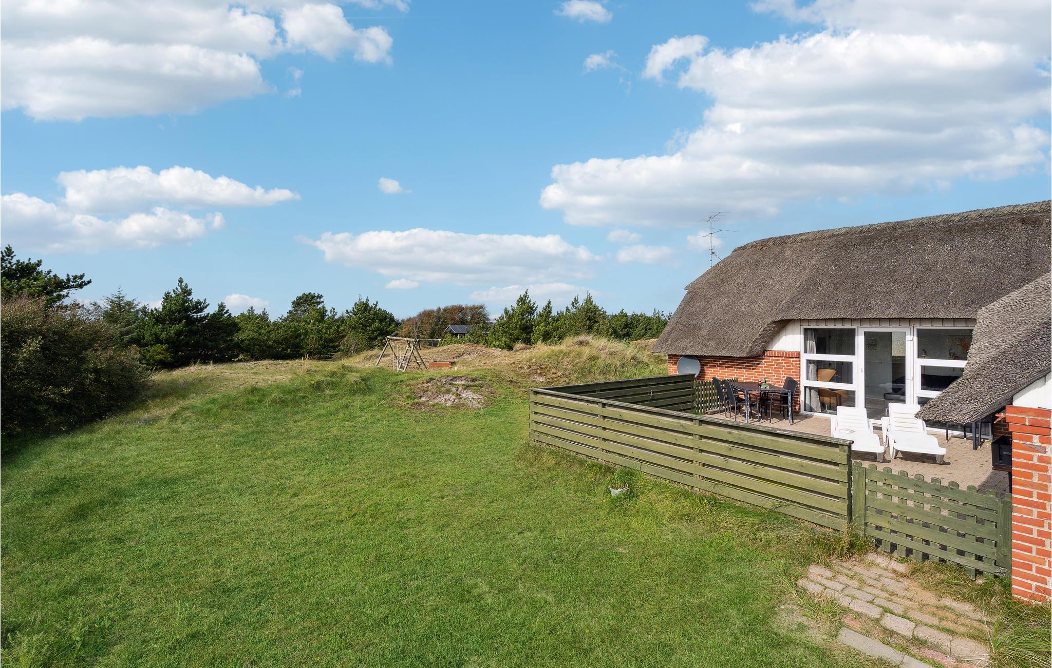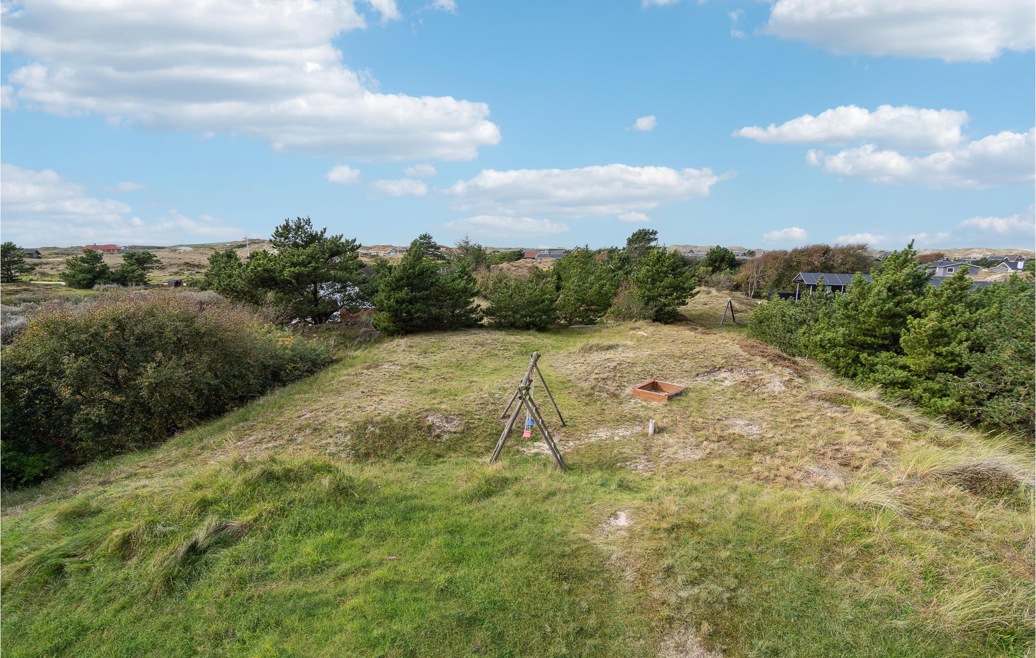 Huset ligger højt på en naturgrund, med udsigt over klitlandskabet. Fanø er en ø med stolte traditioner, smukke gamle huse, med gourmetrestaurant og mange aktiviteter om sommeren. Det er populært at sætte drager op på stranden, ligesom I kan prøve en tur i en strandsejler, som er et køretøj, der drives af vinden hen over sandet.