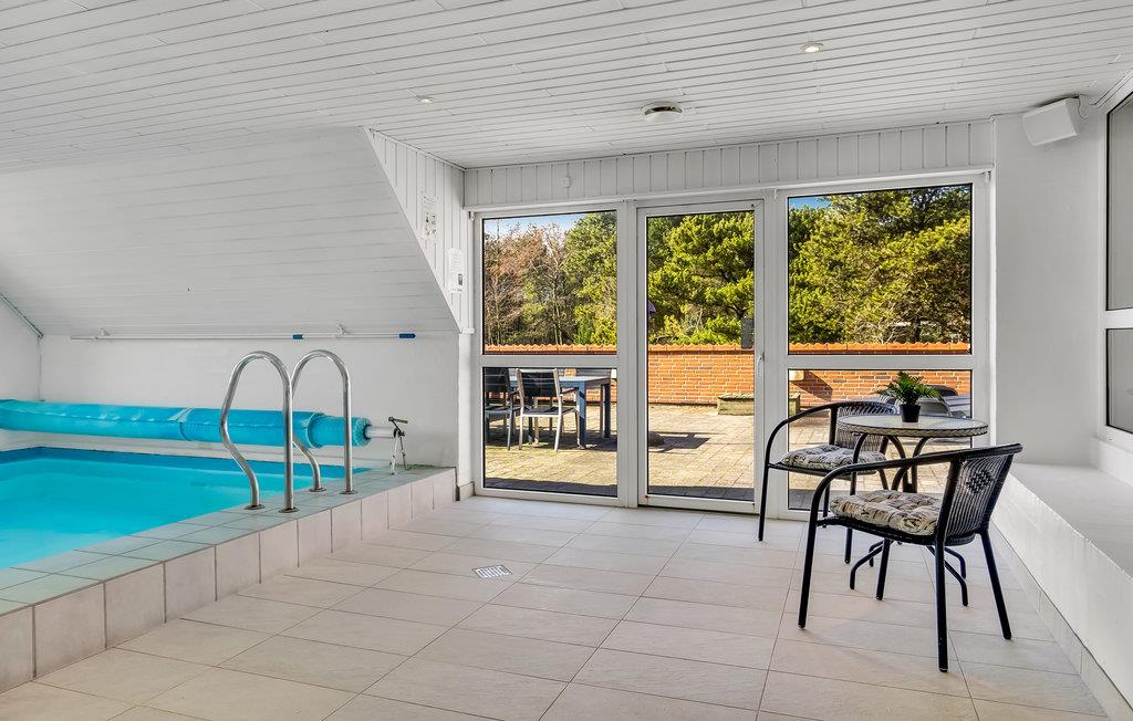 I det dejlige område ved Sønderho ligger dette dejlige swimmingpoolhus med en pæn møbleret, stor stue i åben forbindelse med køkkenet og den hyggelige brændeovn, der spreder en behagelig varme. Her findes endvidere fem gode soveværelser, der alle har adgang fra køkken/alrummet samt to flotte badeværelser, hvoraf det ene er udstyret med vaskemaskine og tørretumbler. Den herlige poolafdeling er naturligvis den helt store attraktion, hvor I bliver budt på flere timers leg og sjov i den 25 m² store swimmingpool samt herlig undervandsmassage i det fem personers spabad og efterfølgende en tur i den velgørende sauna. Nyd de dejlige sommerdage på den store, aflukkede, sydvestvendte terrasse, tag evt. et spil beachvolley på husets egen bane eller hvad med en fodboldkamp? Ren afslapning, hygge og variationsrige feriedage med gode forhold ude som inde er bare noget af det, I vil opleve i løbet af ferien i dette feriehus - velkommen.