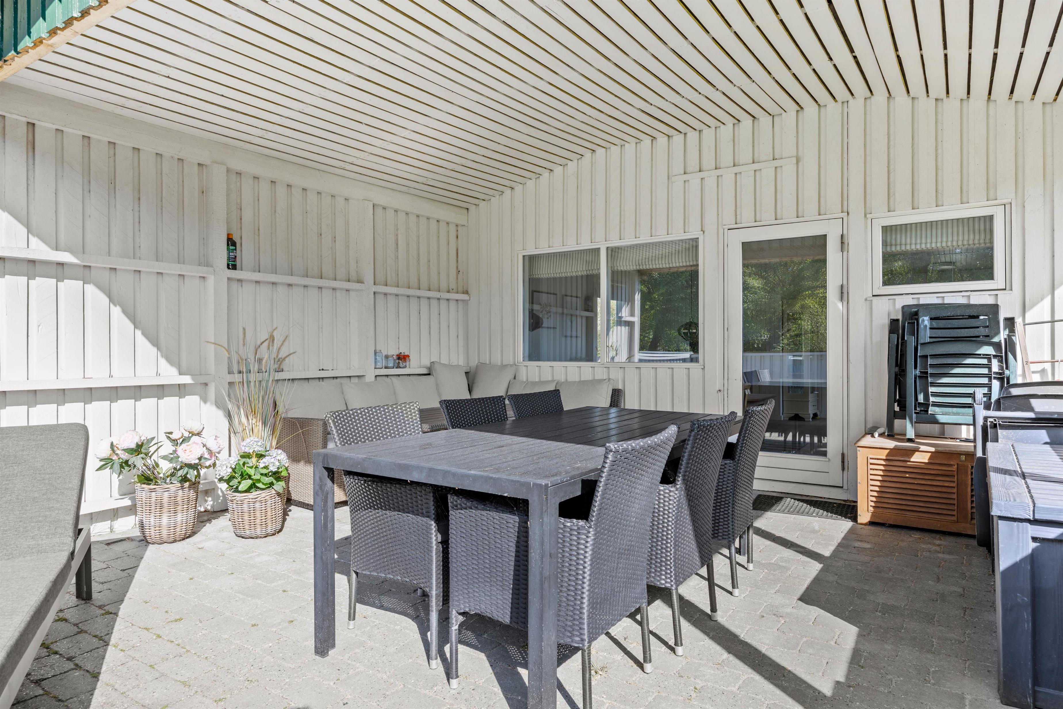 Sommerhusets udemiljø indbyder til hygge på de lune sommerdage. Her står jer både havemøbler og liggestole til rådighed, så sommeren kan nydes til fulde. Den store terrasse er både afskærmet og overdækket, så I uanset vind og vejr kan opholde jer ude. Derudover er der på terrassen også grill, så I kan prøve nogle af de lokale specialiteter, der kan købes i diverse gårdbutikker på øen.