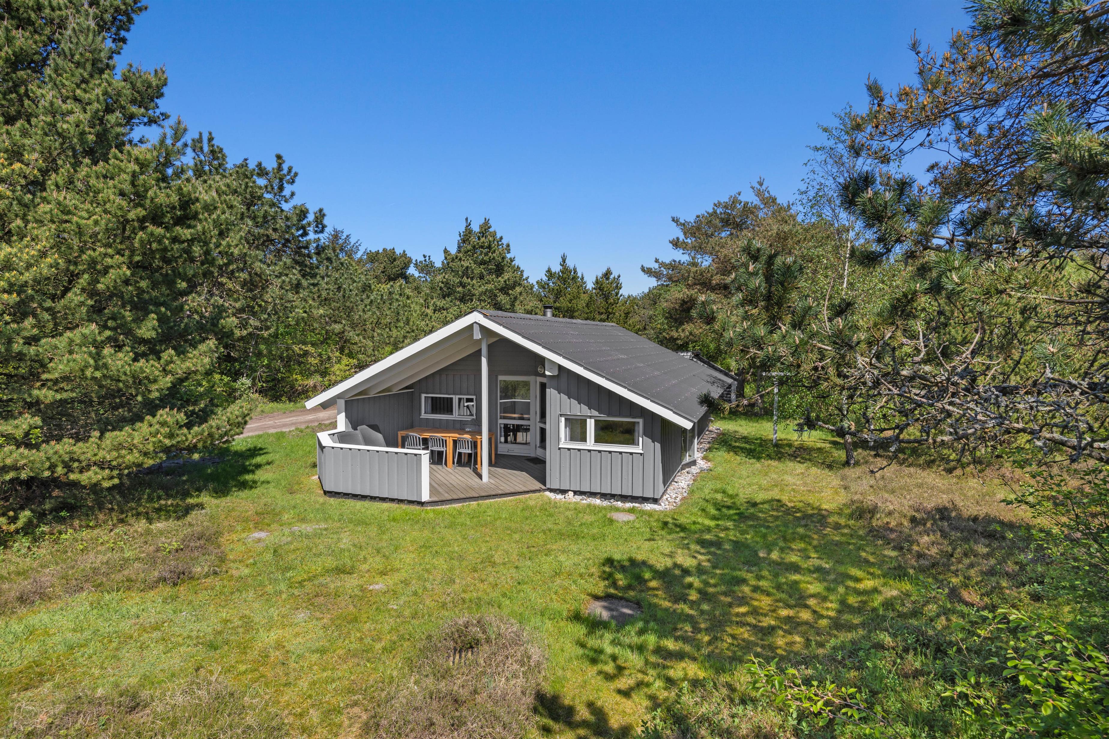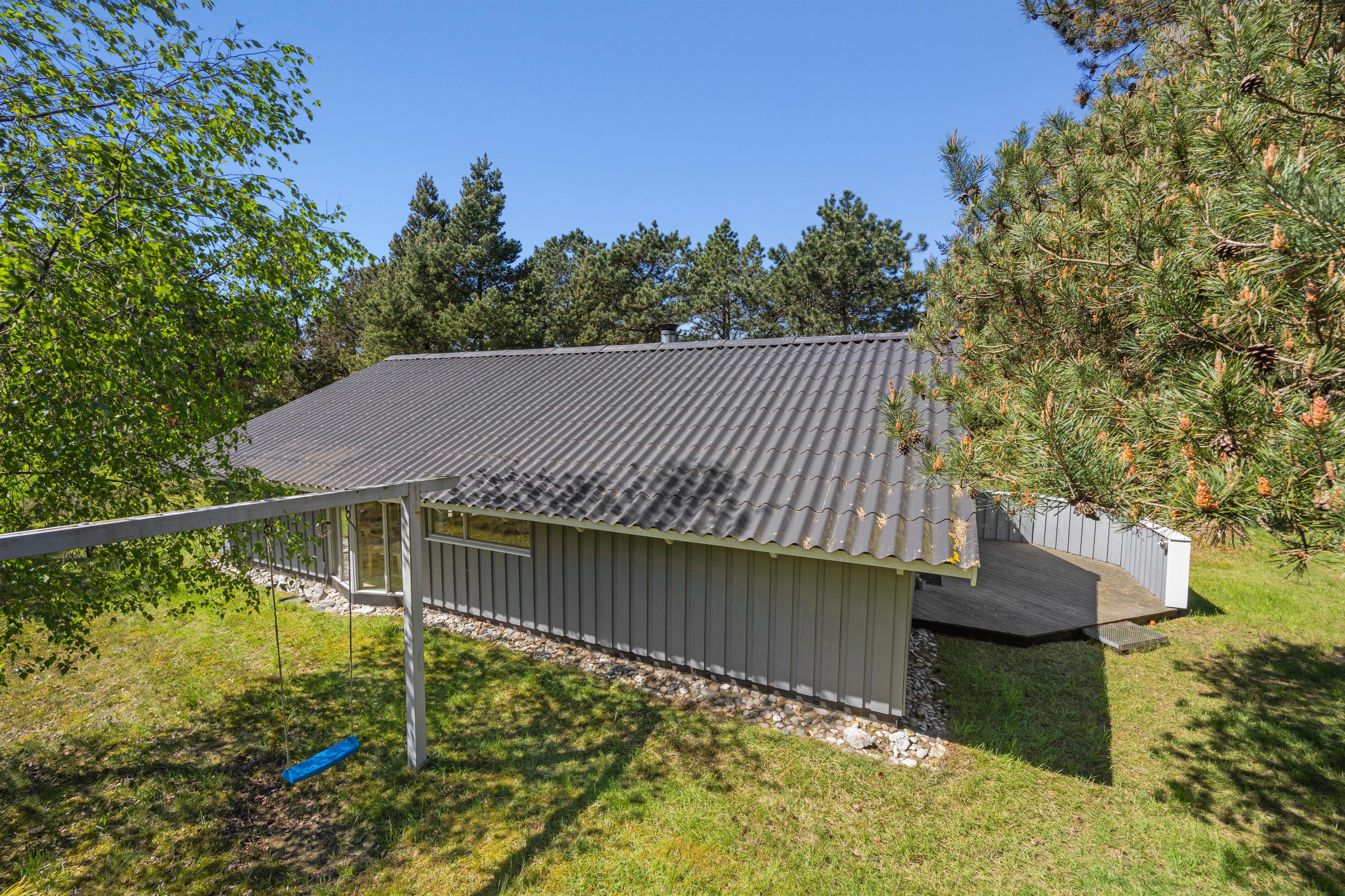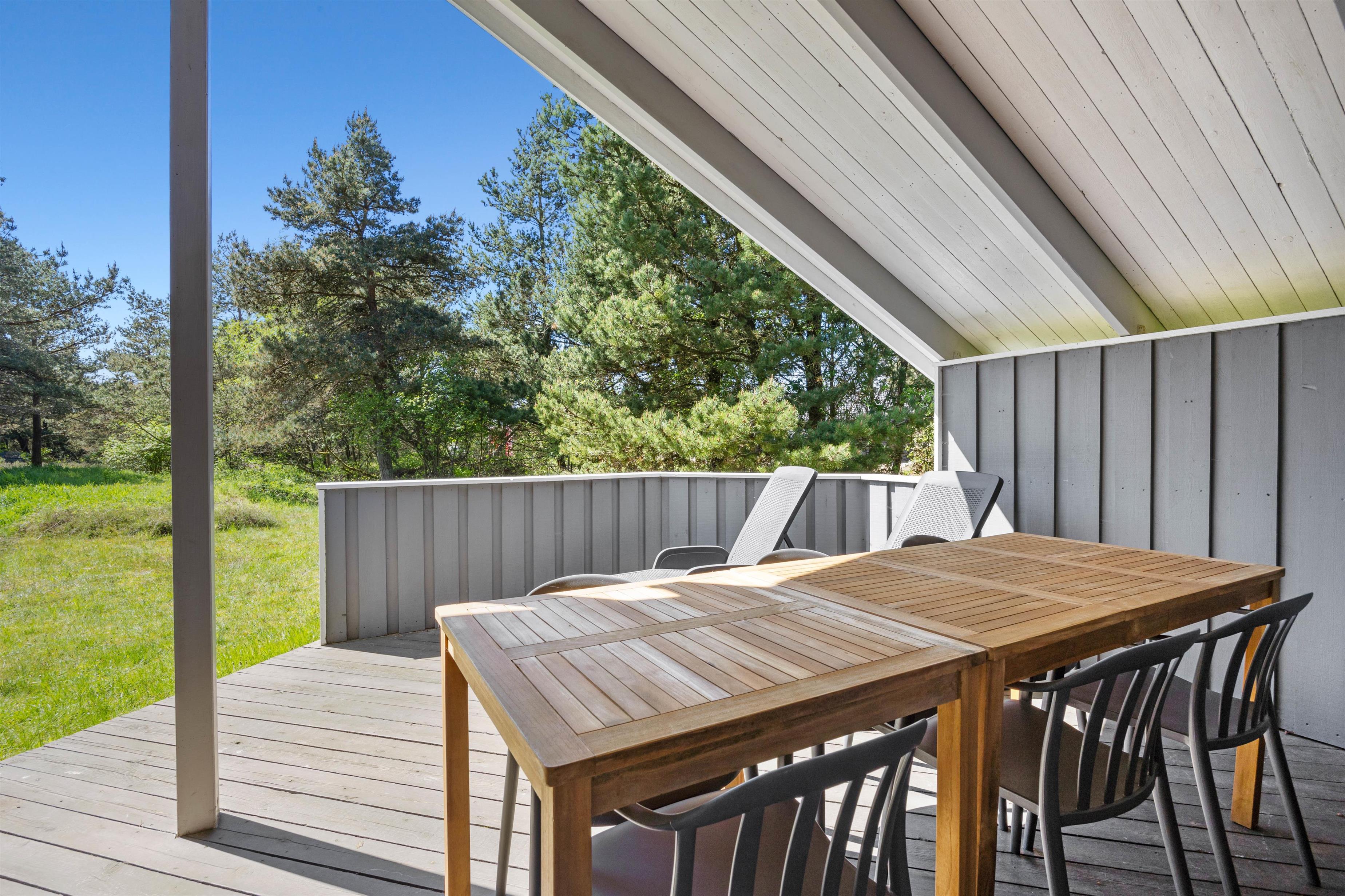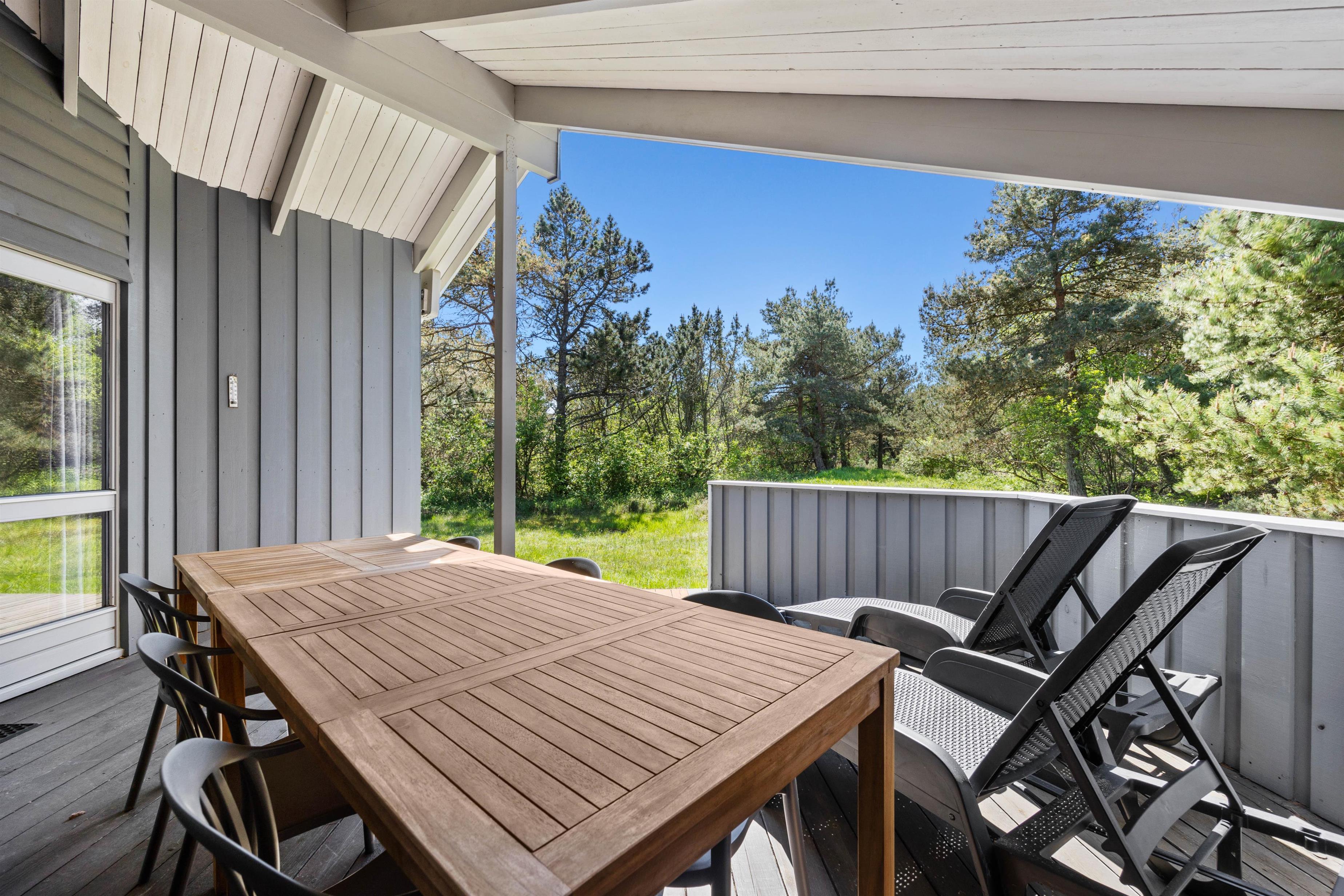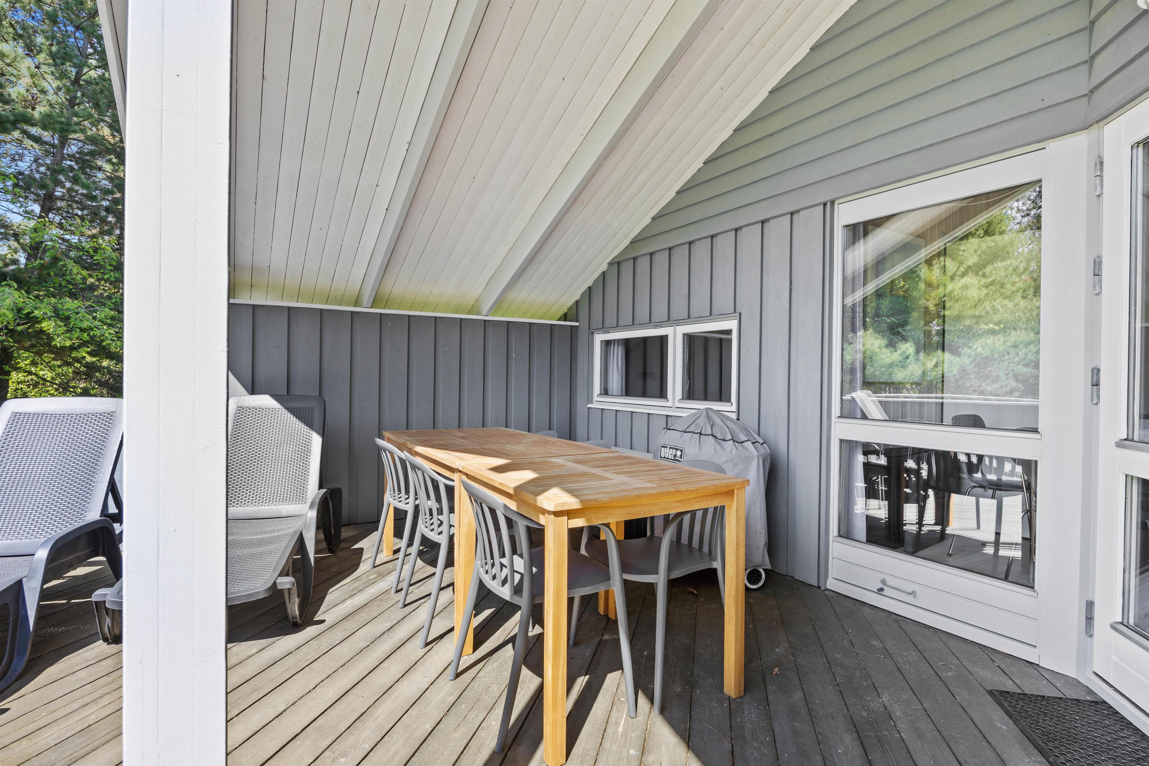 De feriedage, hvor solen står højt på himlen, skal I da nyde udendørs. De kan tilbringes på sommerhusets terrasse, der er delvis åben og overdækket i ly for blæst, eller hvis I trænger til lidt skygge de timer, hvor solen bliver for stærk. Børnene får sig måske en gyngetur, mens I tænder op for grillen, eller bare daser i havemøblerne, som I kan finde jer godt til rette i.