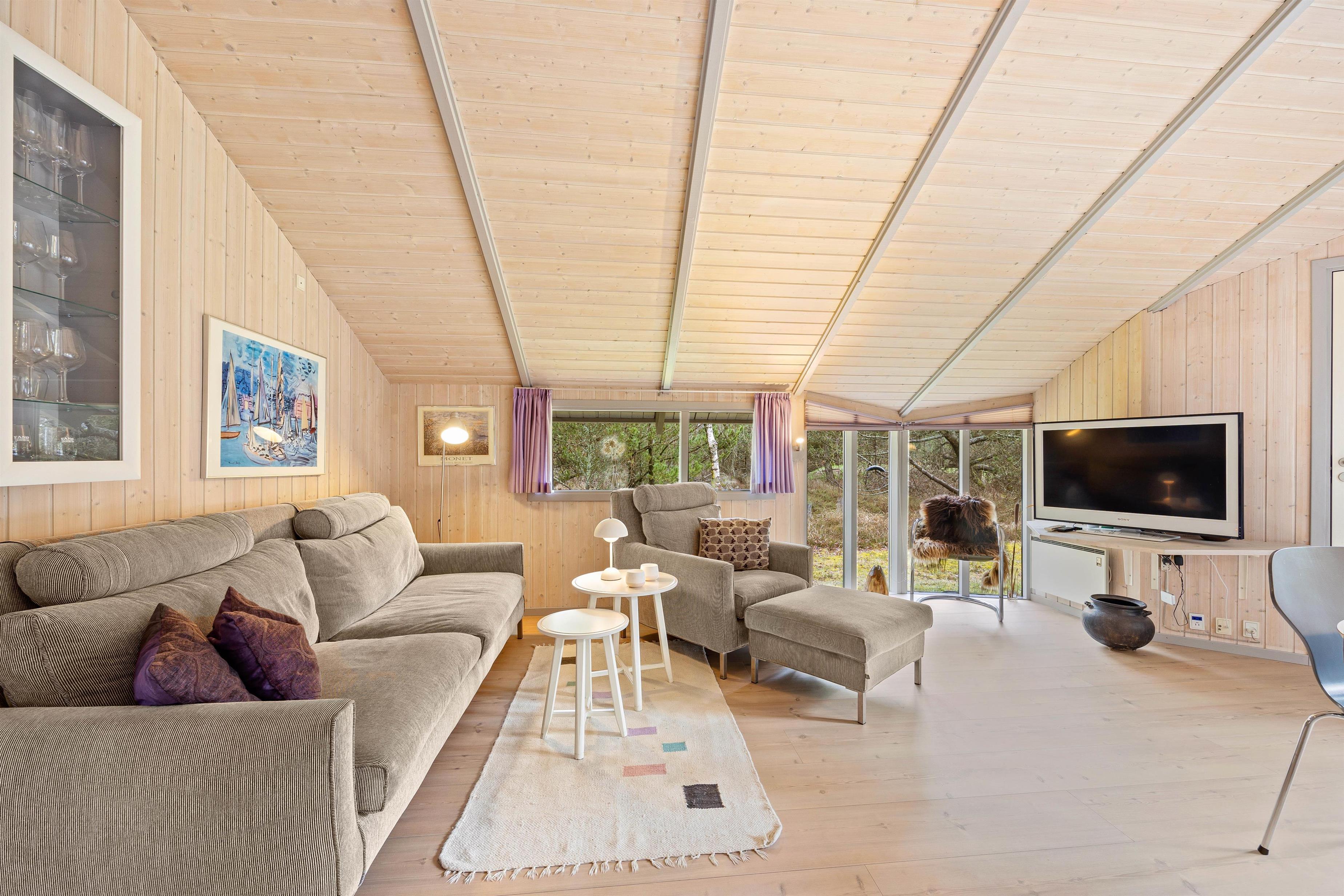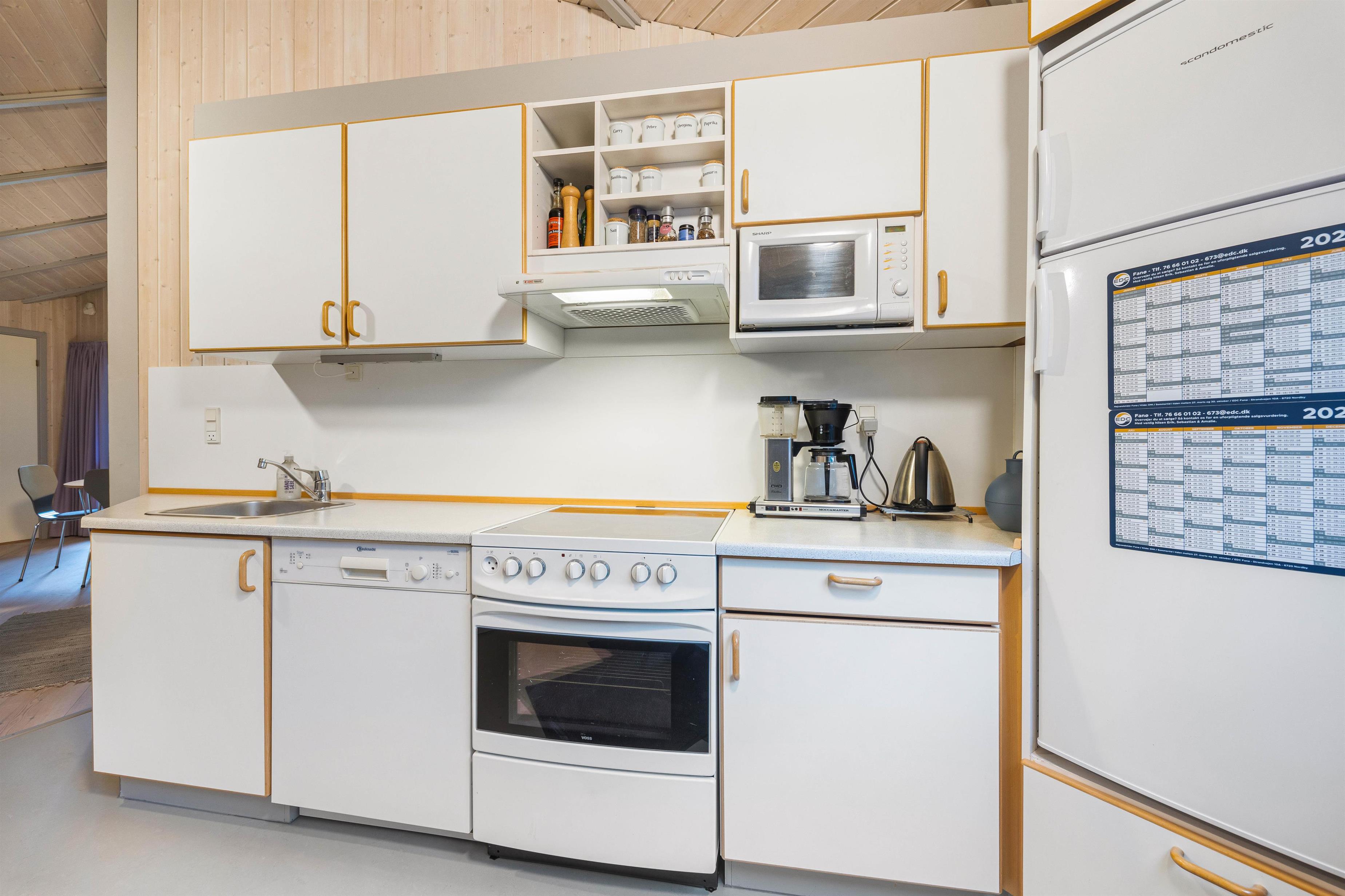 I køkken og alrummet kan I samles til spil ved sofabordet, læse en bog eller Chromcaste en god film, alt imens brændeovnens knitrende flammer fuldender stemningen. Køkkenet er praktisk indrettet med en opvaskemaskine, og feriehuset er udstyret med en energivenlig varmepumpe, der sikrer jeg er godt indeklima.