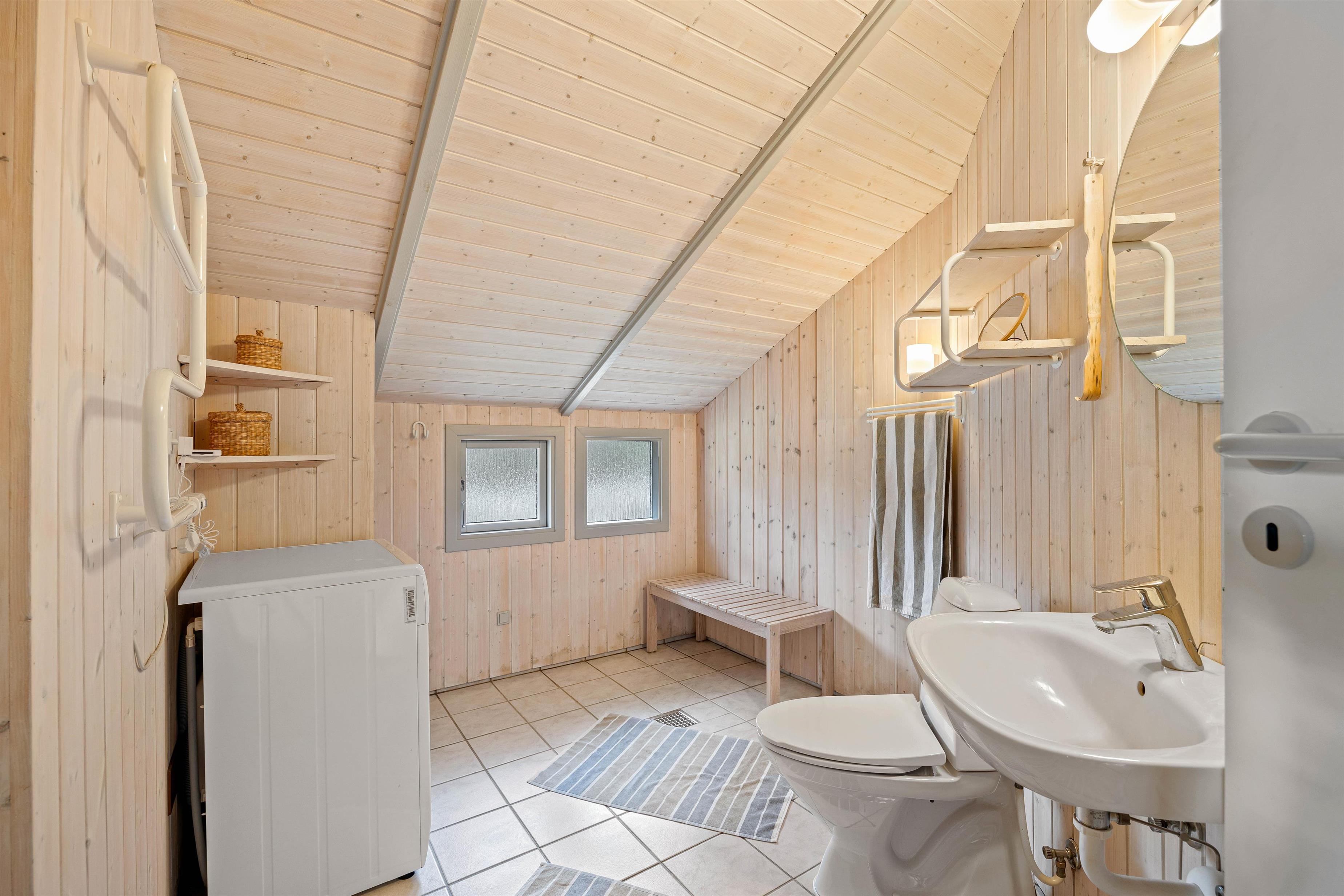 Når feriedagen lakker mod enden, og I trænger til at hvile og samle ny energi til næste feriedag, kan I søge mod sommerhusets 3 soveværelser. På 2 af soveværelserne finder i dobbeltsenge med målene 180x200cm, og det tredje soveværelse har enkeltsenge, der måler 2x80x190cm. På badeværelset behøver I ikke fryse fødderne, for her er der gulvvarme.