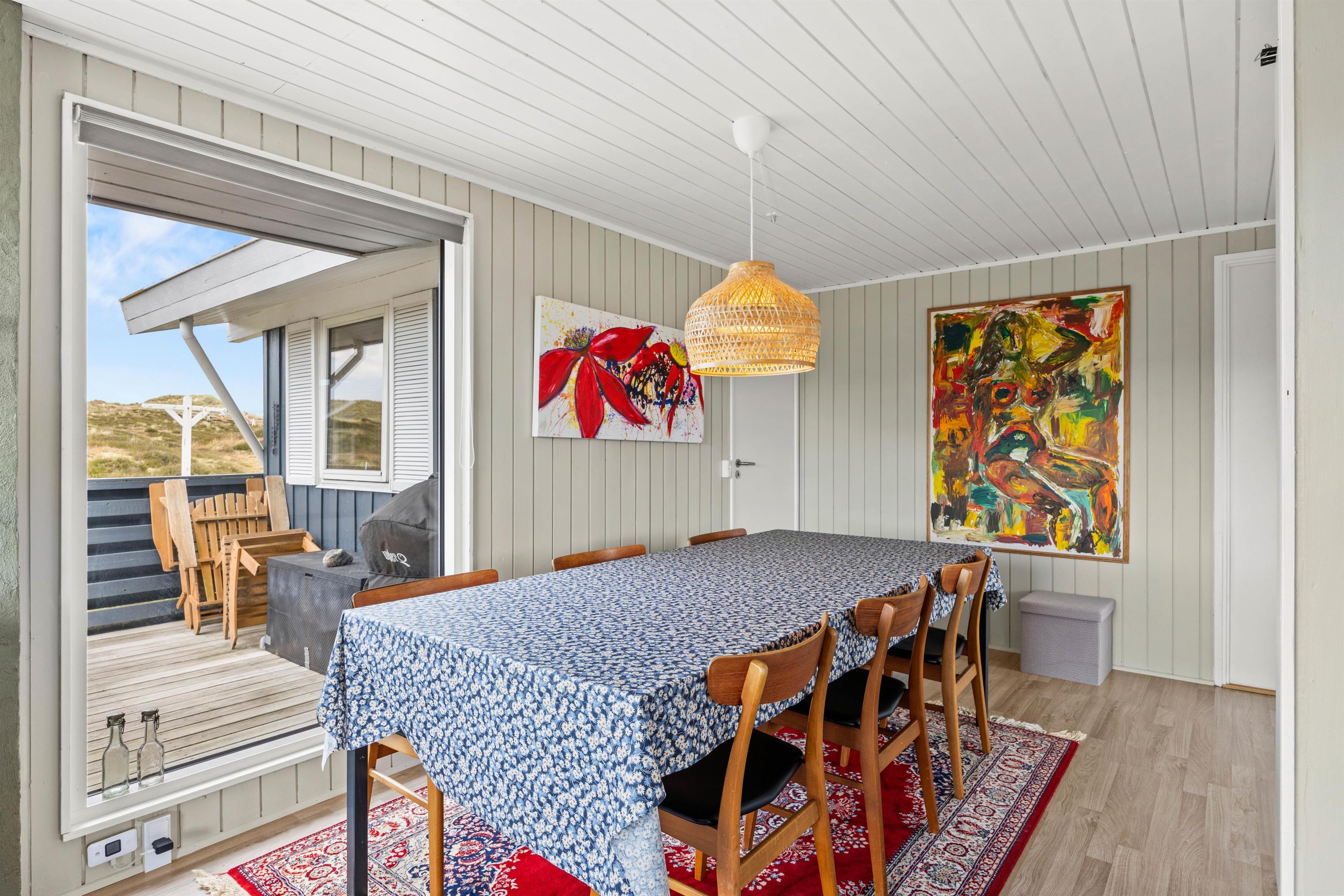 Det hyggelige sommerhus ligger på en fin natrugrund og har en fantastisk udsigt over Fanøs natur. Den lukkede og delvist overdækkede terrasse har både liggestole, havemøbler og grill, så I kan nyde sommersolen her. Mens I nyder roen på jeres lukkede terrasse, kan børnene og hunden bevæge sig frit.