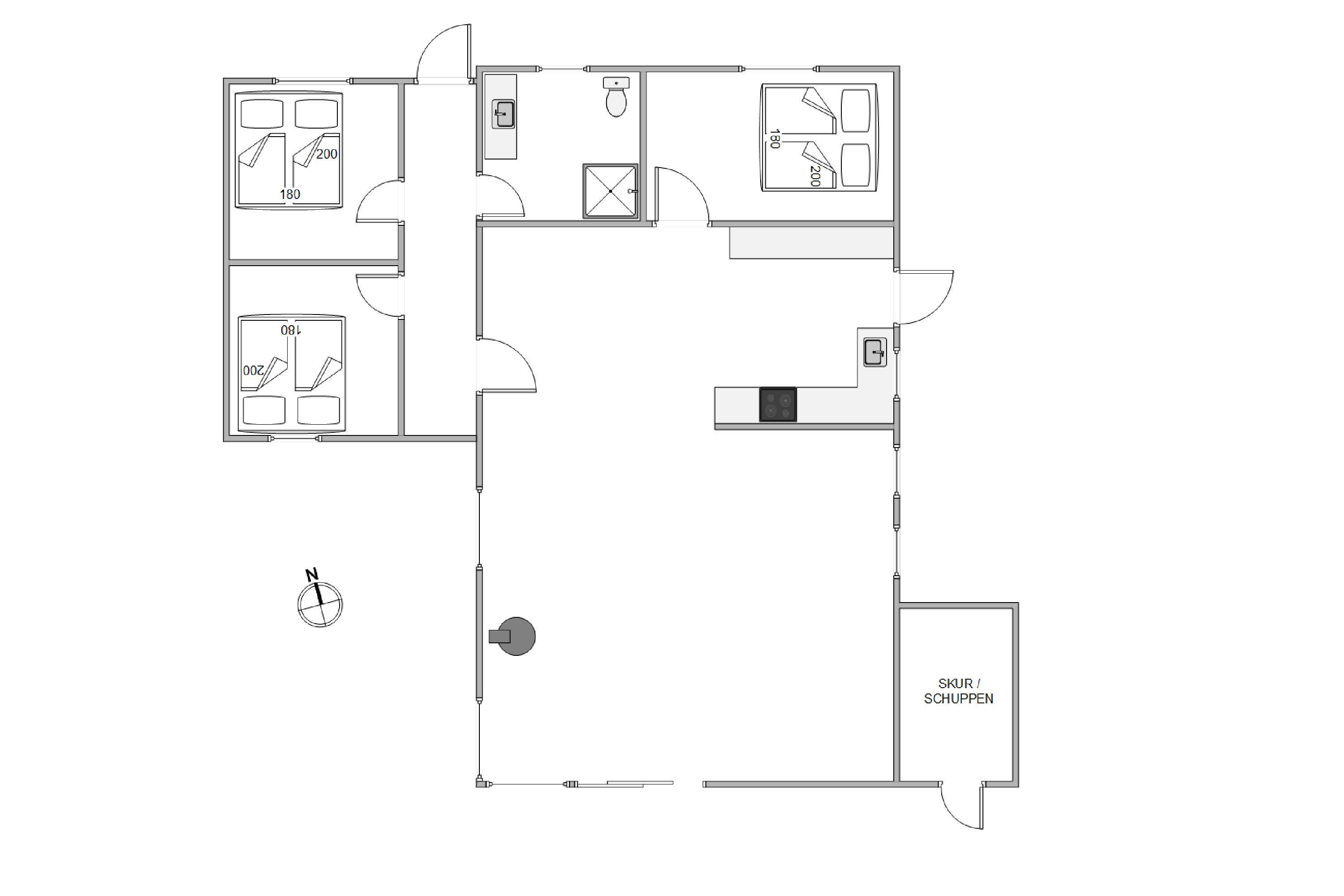 Allerede når I træder ind i sommerhuset, vil I kunne mærke stemningen af sommerhusferie. Væggene og loftene i hele sommerhuset er beklædt med træ og malet lyst. Midtpunktet i dette dejlige sommerhus vil helt sikkert være den hyggelige og lyse opholdsstue, hvor stue, køkken og spisestue er samlet. Uanset hvor I befinder jer i dette rum, har I en fantastisk udsigt over den smukke natur.