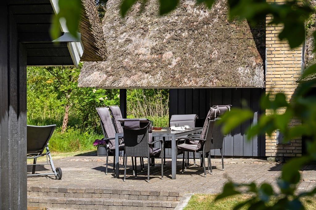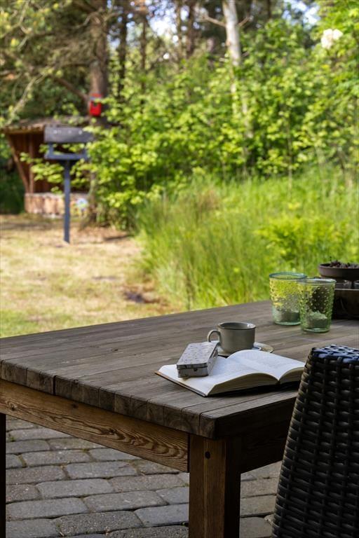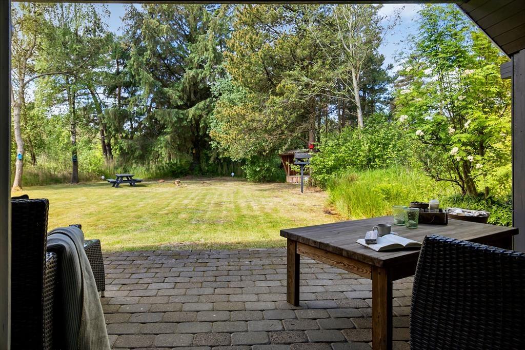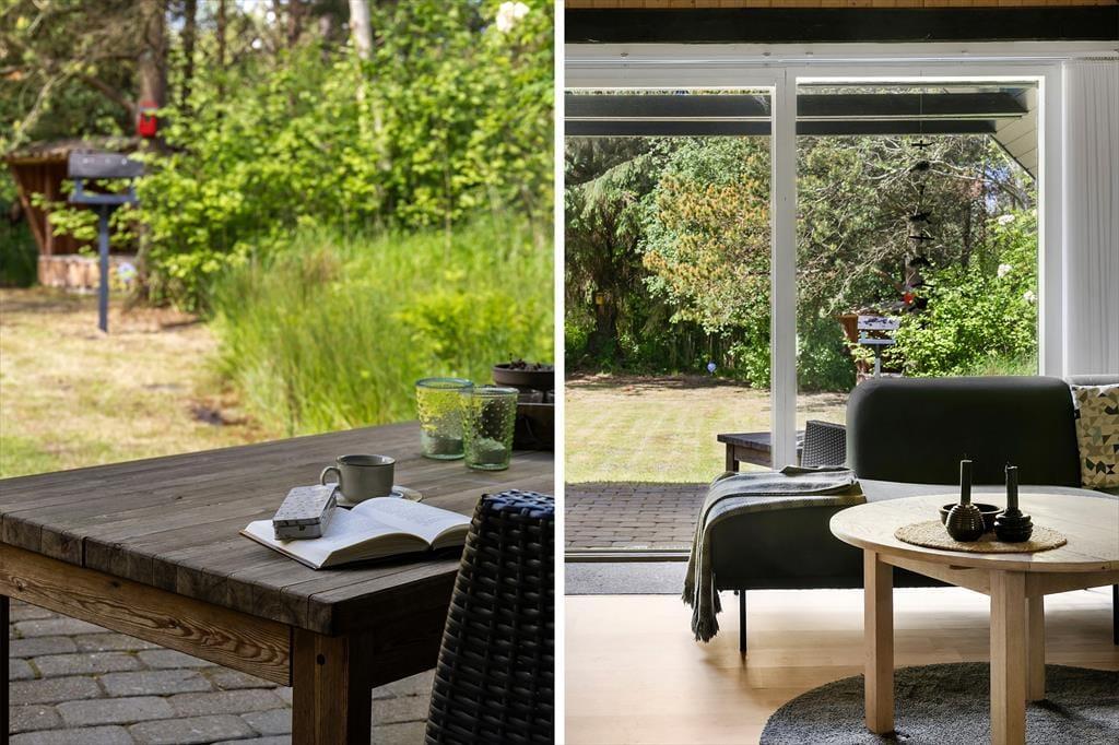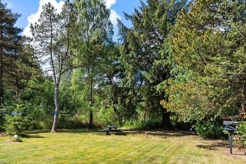 Den 2500 m² store grund er et skønt sted at nyde solskinsvejret og den idylliske feriefred. Havens græsplæne omkranses af høje træer og tæt beplantning, og rundt omkring er der placeret flere opholdspladser og terrasser, så det er nemt at finde et sted med perfekte solforhold uanset tidspunktet på dagen.