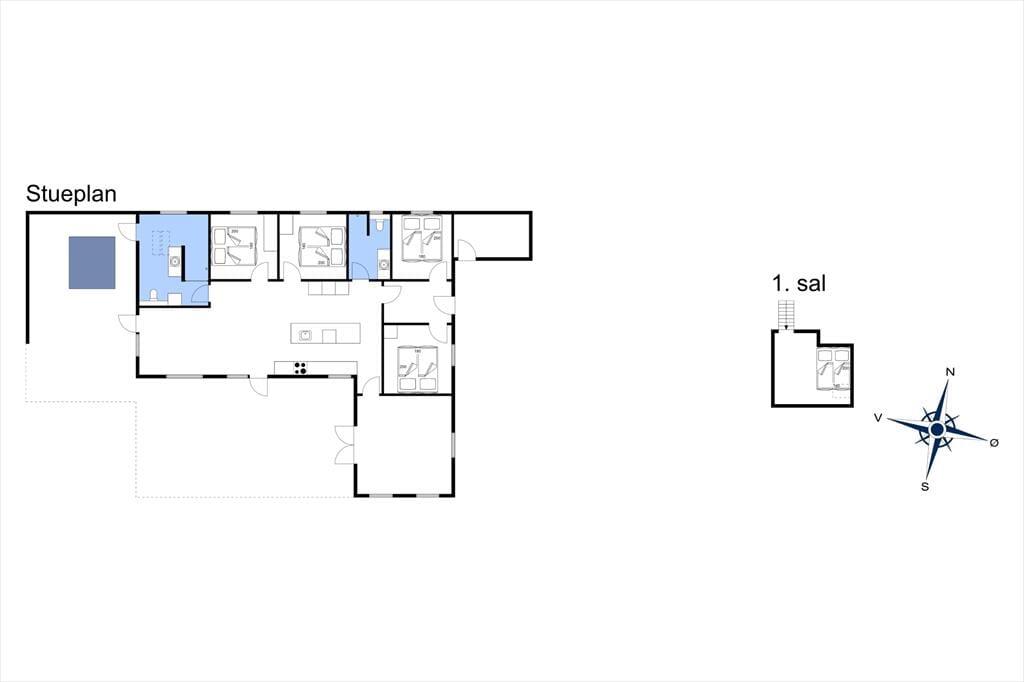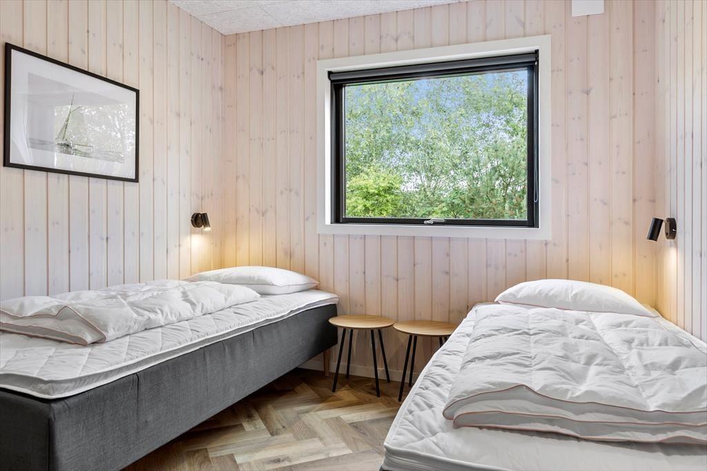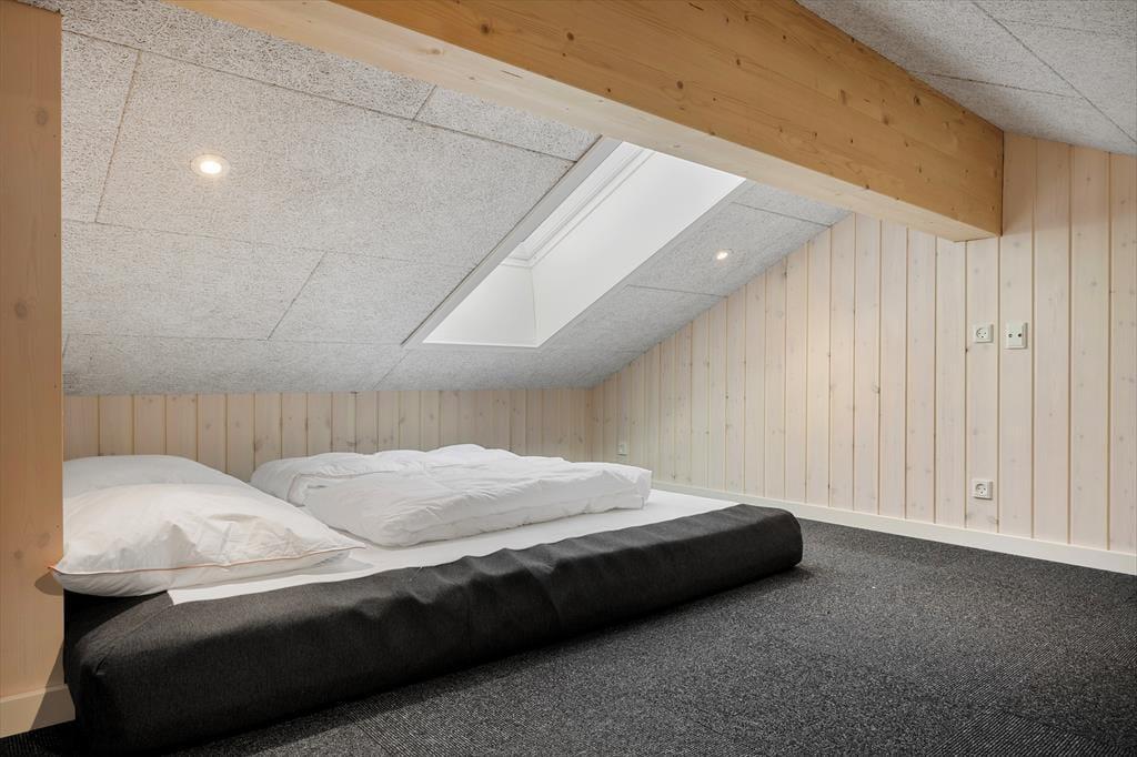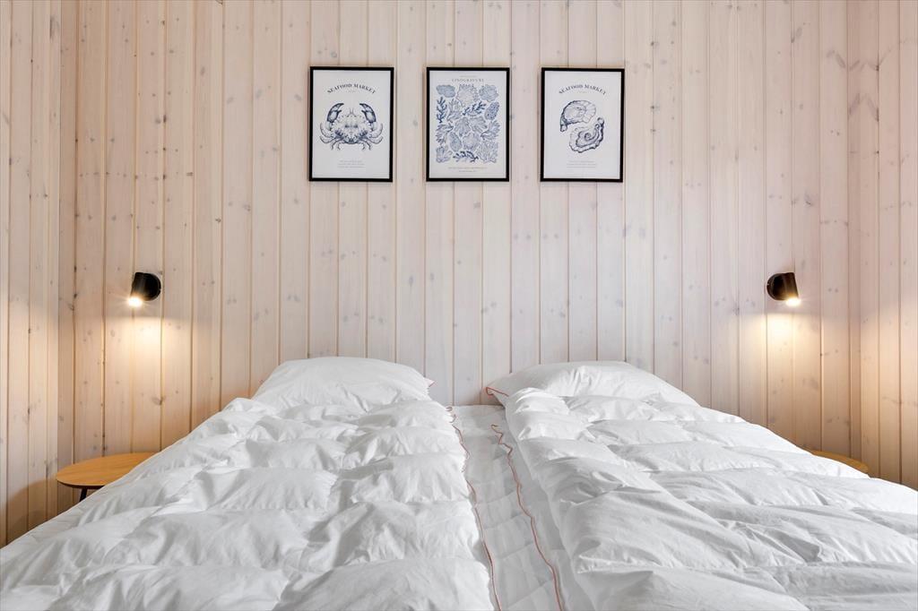 Med hele 149 m² har I masser af plads til at brede jer inden døre i sommerhuset, og derfor kan I nemt samles op til ti personer. Foruden fire soveværelser med dobbeltseng er der også en hems med ekstra madrasser, og derudover byder planløsningen på to badeværelser og en entré med vaskefaciliteter. Stue, køkken og aktivitetsrum ligger i åben forbindelse, og her i den flotte opholdsafdeling har I alt, hvad I skal bruge for at have det sjovt og slappe af – inklusive brændeovn, poolbord og fladskærms-tv med Chromecast.