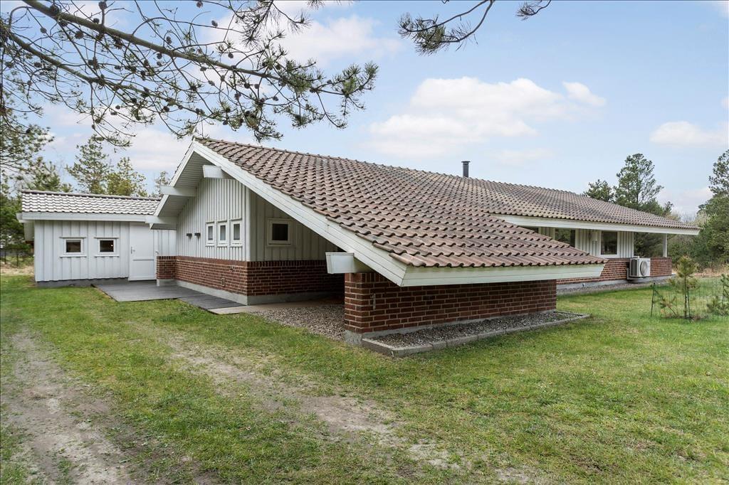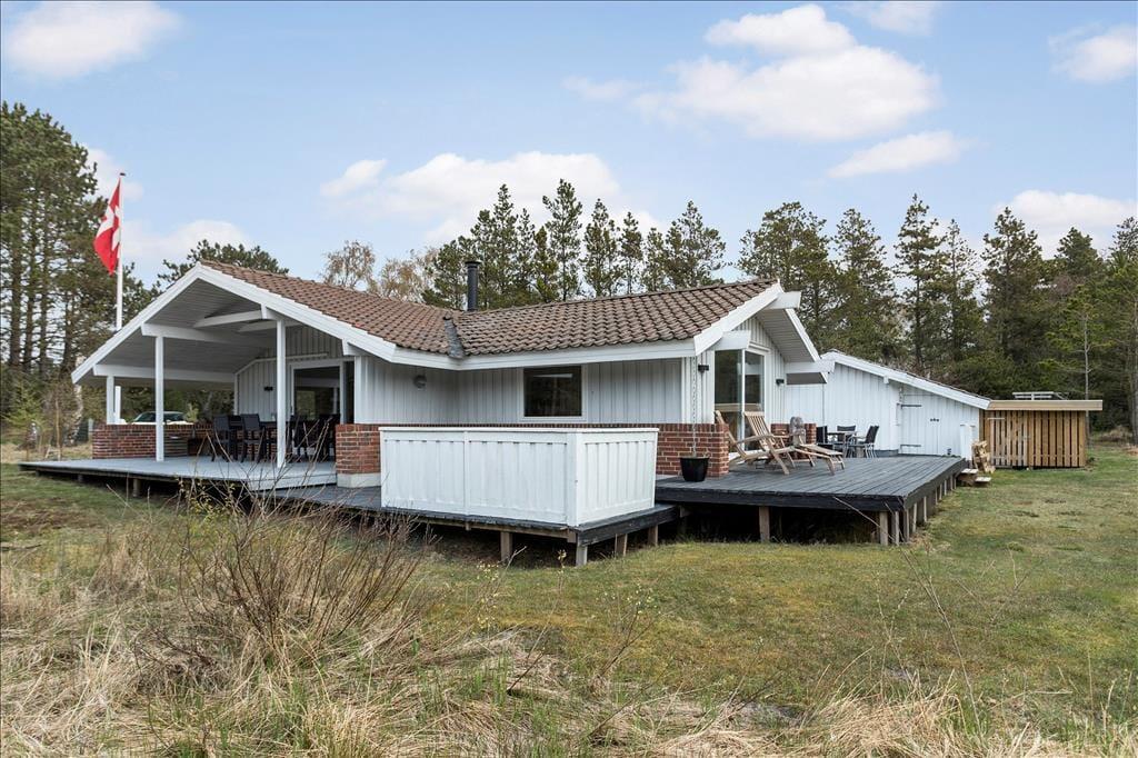 En stor, hævet terrasse breder sig syd og vest for sommerhuset og sørger for, at du kan bevæge dig tørskoet hen til annekset. En del af terrassen er overdækket, hvis du ønsker ly eller skygge, og der er mange dejlige hyggekroge at vælge imellem, når du vil finde en plads i solen. Til de yngste feriegæster er der sandkasse og gynger, mens familiemedlemmer i alle aldre kan sætte pris på græsvolleybanen og naturgrundens idylliske fred.
