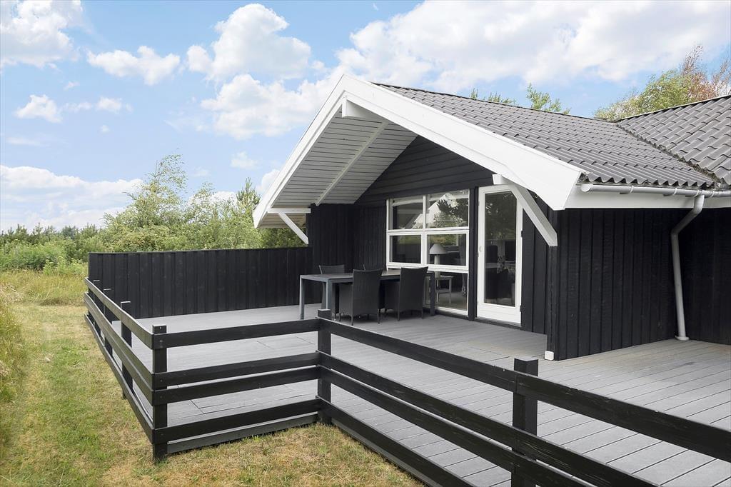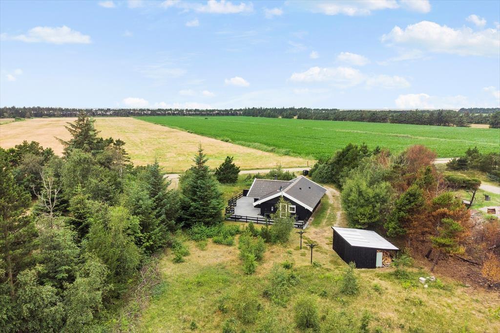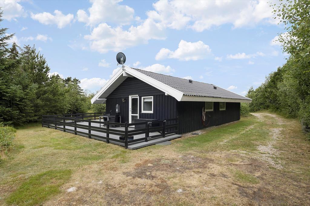 Udenfor finder du en dejlig terrasse, som er det perfekte sted for morgenkaffe eller grillaftener med familien. Her kan du nyde naturens lyde, mens du lader feriestemningen sive ind. Grunden er rummelig og velegnet til leg og sjov for børn såvel som hunde; her er plads til at løbe rundt, lege og slappe af. Her kan I nyde den friske luft og de skønne omgivelser, mens I skaber minder sammen. Området indbyder til lange gåture, hvor I kan udforske den nærliggende natur og nyde den friske havluft.