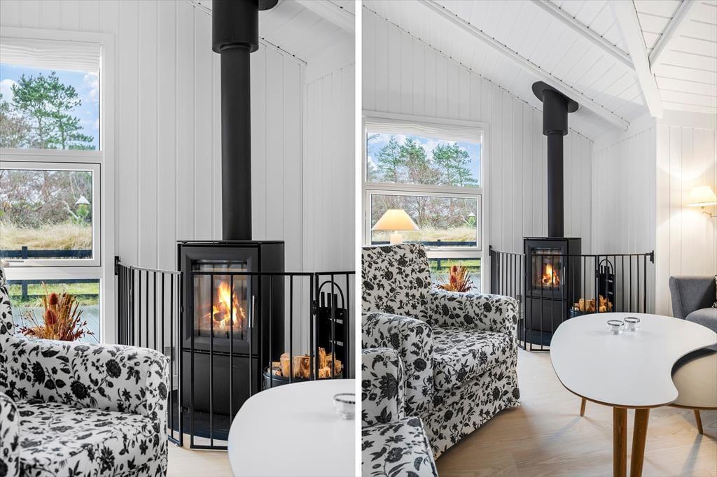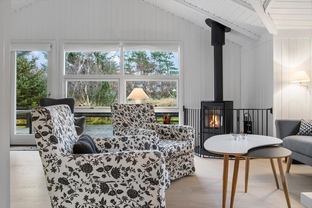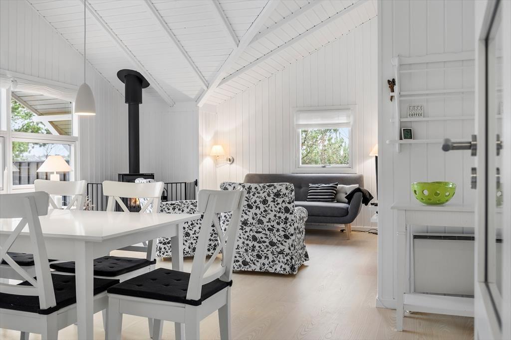 Træd indenfor i det hyggelige sommerhus, hvor en varm atmosfære byder velkommen. Indretningen er klassisk og indbydende med trævægge, der giver en autentisk sommerhusstemning. Stuen er lyst og rummeligt og indbyder til afslappende stunder med brætspil og gode bøger, mens den knitrende brændeovn skaber en hyggelig stemning på kølige aftener. Køkkenet er funktionelt og nemt at bruge, så I kan tilberede lækre feriemåltider. Her findes også flere komfortable soveværelser, der sikrer, at hele familien kan nyde en god nats søvn.