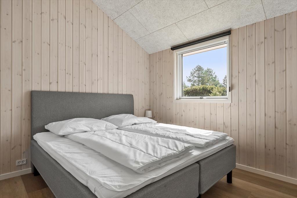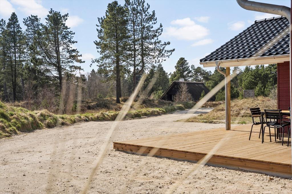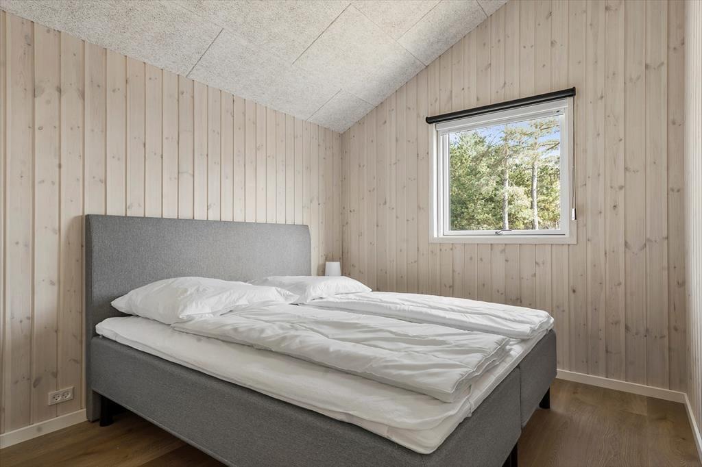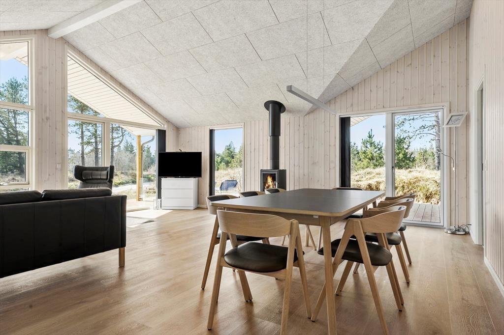 Træd indenfor i dette indbydende sommerhus, hvor lys og rummelighed er i centrum. De åbne og luftige værelser giver dig en følelse af ro, mens de mættede farver og de elegante trædetaljer skaber en hyggelig og varm atmosfære. Det er det ideelle sted at finde sig selv med en god bog foran brændeovnen eller til at samles om en brætspils-aften med familien. De store vinduer slipper naturligt lys ind og giver udsigt til klitlandskabet, så du kan nyde de smukke omgivelser, selv når du er indendørs. Planløsningen inkluderer desuden dejlige soveværelser, hvor du kan trække dig tilbage efter en dag fyldt med oplevelser.