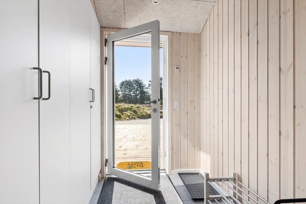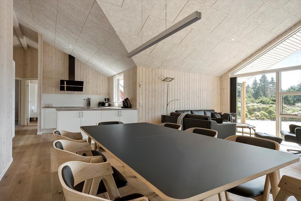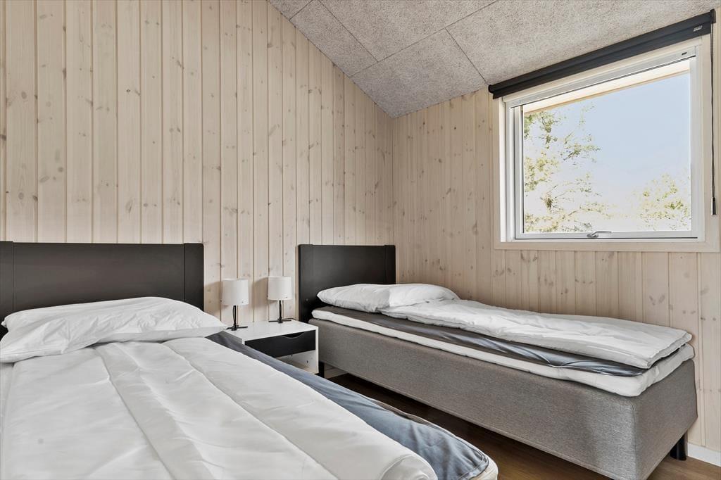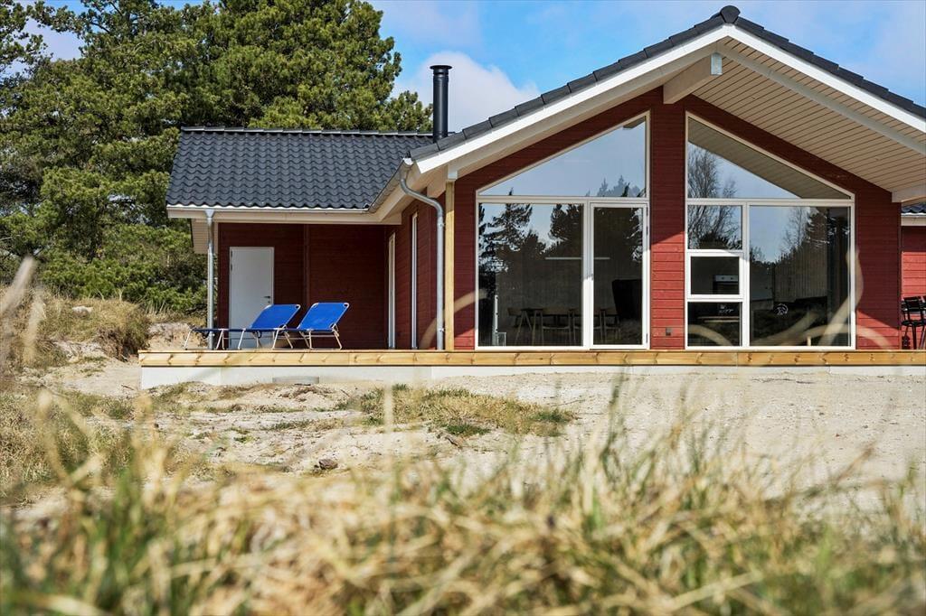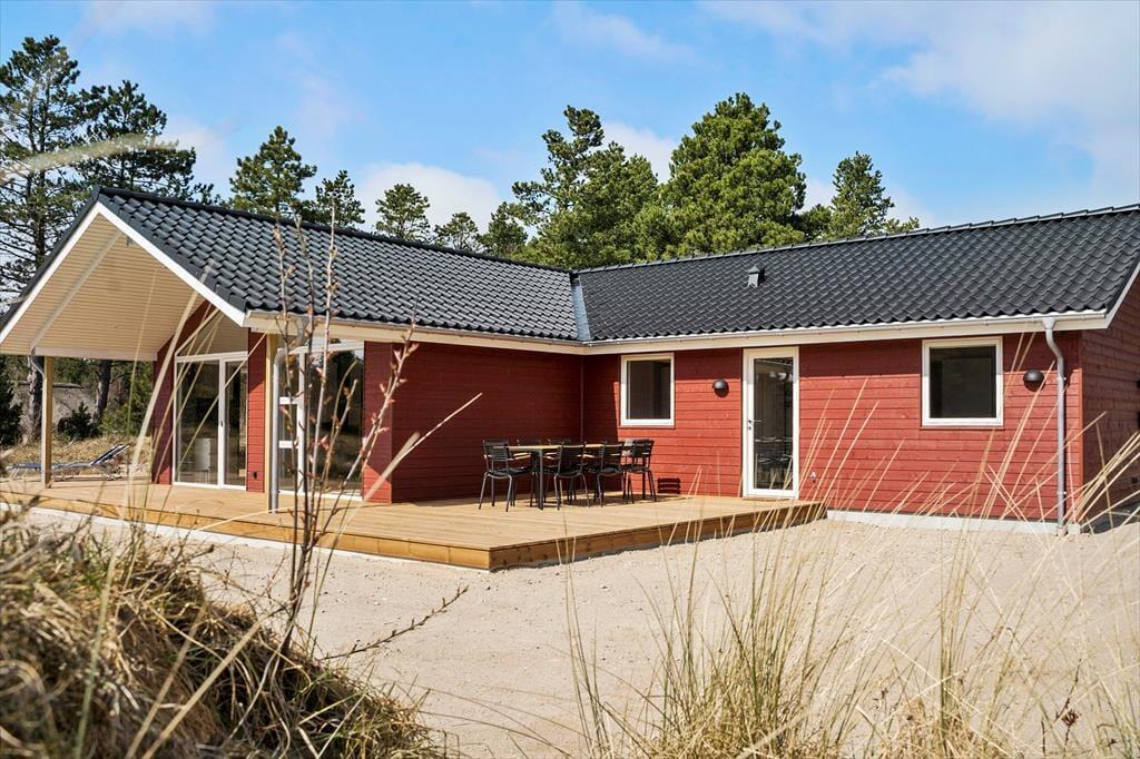 Træd indenfor i dette indbydende sommerhus, hvor lys og rummelighed er i centrum. De åbne og luftige værelser giver dig en følelse af ro, mens de mættede farver og de elegante trædetaljer skaber en hyggelig og varm atmosfære. Det er det ideelle sted at finde sig selv med en god bog foran brændeovnen eller til at samles om en brætspils-aften med familien. De store vinduer slipper naturligt lys ind og giver udsigt til klitlandskabet, så du kan nyde de smukke omgivelser, selv når du er indendørs. Planløsningen inkluderer desuden dejlige soveværelser, hvor du kan trække dig tilbage efter en dag fyldt med oplevelser.
