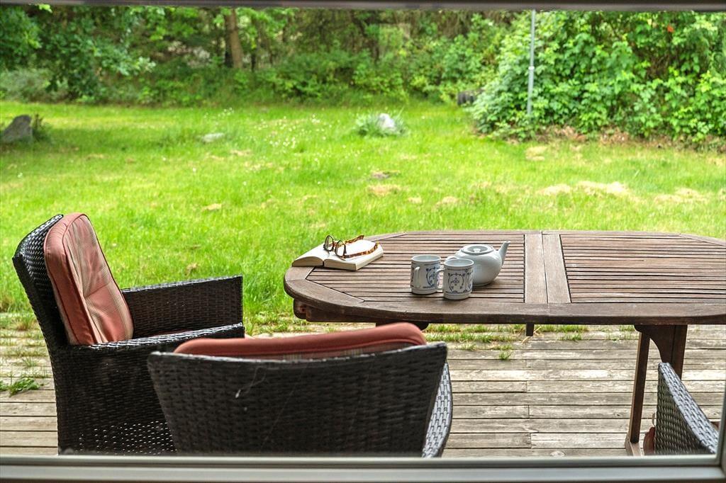 Huset byder på en skøn, delvist overdækket terrasse med plads til afslapning, leg og socialt samvær. Her kan du nyde din morgenkaffe, mens du lytter til fuglekvidder, eller slappe af med en god bog i den rolige atmosfære. Den fine strandkurv bidrager med et lille ekstra til feriestemningen, og de store, åbne arealer inviterer til leg og hyggelige stunder. Sommerhusets ugenerede beliggenhed tæt betyder, at du kan træde direkte ud i den friske luft og mærke brisen fra Vesterhavet.