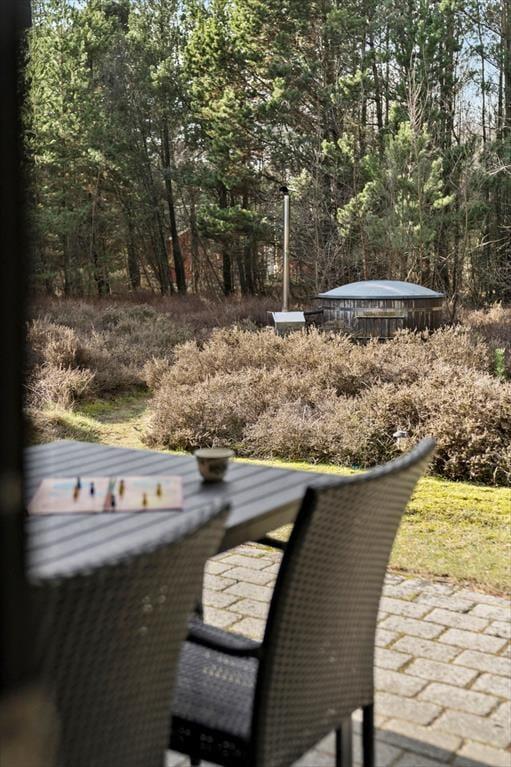 Hyggeligt sommerhus ved Sønderstrand med brændeovn, vildmarksbad og børnevenlige faciliteter på stor naturgrund.