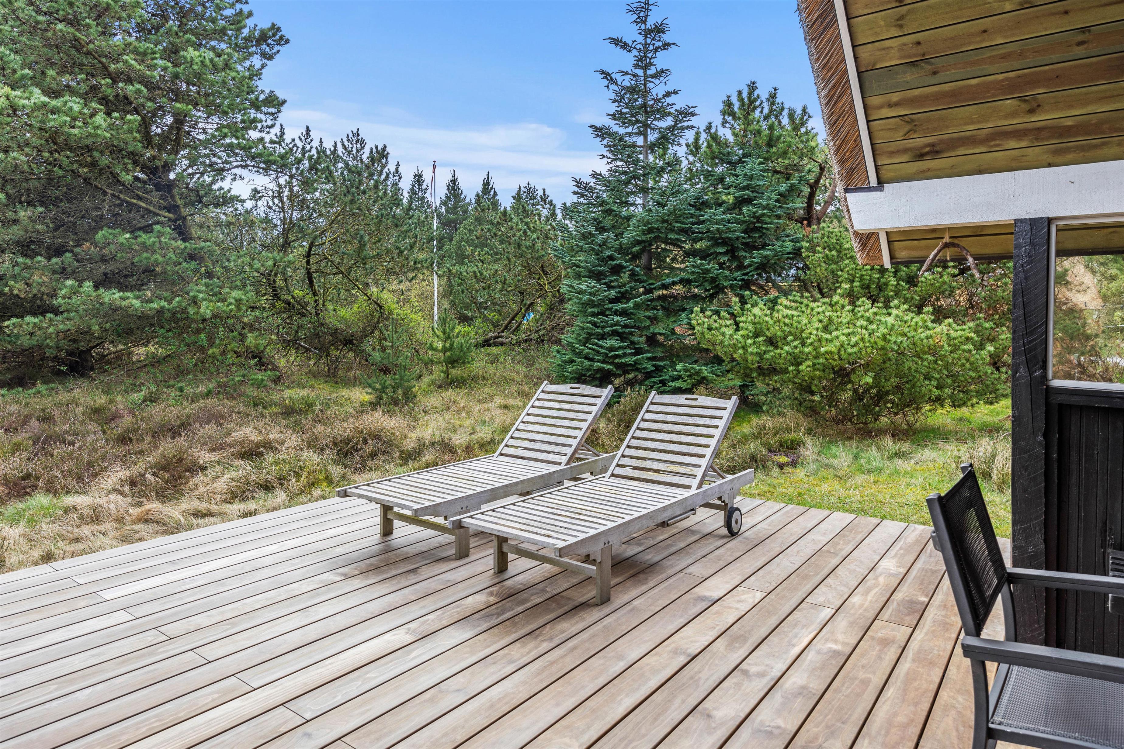 Den brede træterrasse har både et åbent, et overdækket og et afskærmet afsnit, så her kan man altid finde en god krog at slappe af i. Tag solbad på liggestolene eller træk jer tilbage i havemøblerne med en drink eller en kop kaffe, imens I nyder opholdet på naturskønne Rømø. Tænd op i grillen til aften, og nyd et lækkert grillmåltid sammen, imens skyggerne bliver lange. I kan stadig nå en tur til den fantastiske Sønderstrand og opleve solnedgangen i Vesterhavet – det er en imponerende oplevelse – hver gang.