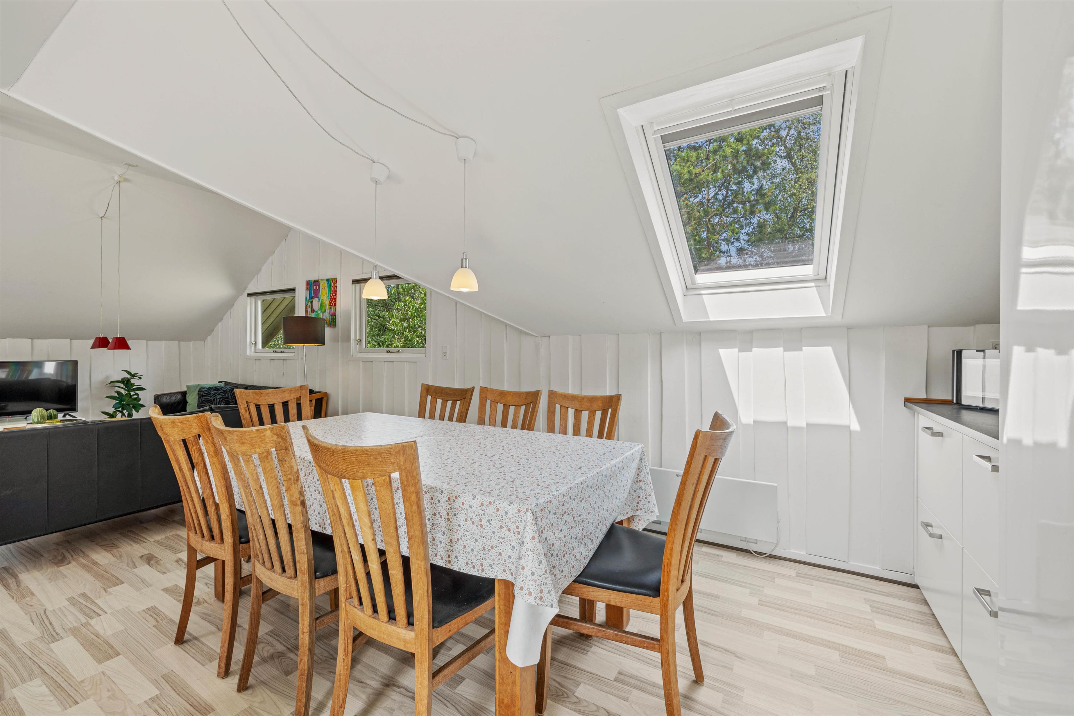 Indkørslen er bred, så der kan holde flere biler. Man kommer ind i det smukke feriehus via den lukkede terrasse foran indgangsdøren. Her er 132 velindrettede m² til i alt 8 feriegæster og 2 hunde. Soveværelserne er hyggeligt indrettet, og ovenlysvinduerne giver masser af lys i alle rum. Der er i alt 8 komfortable sovepladser, fordelt på 2 soveværeler med 2 dobbeltsenge og 2 soveværelser med 2 enkeltsenge.