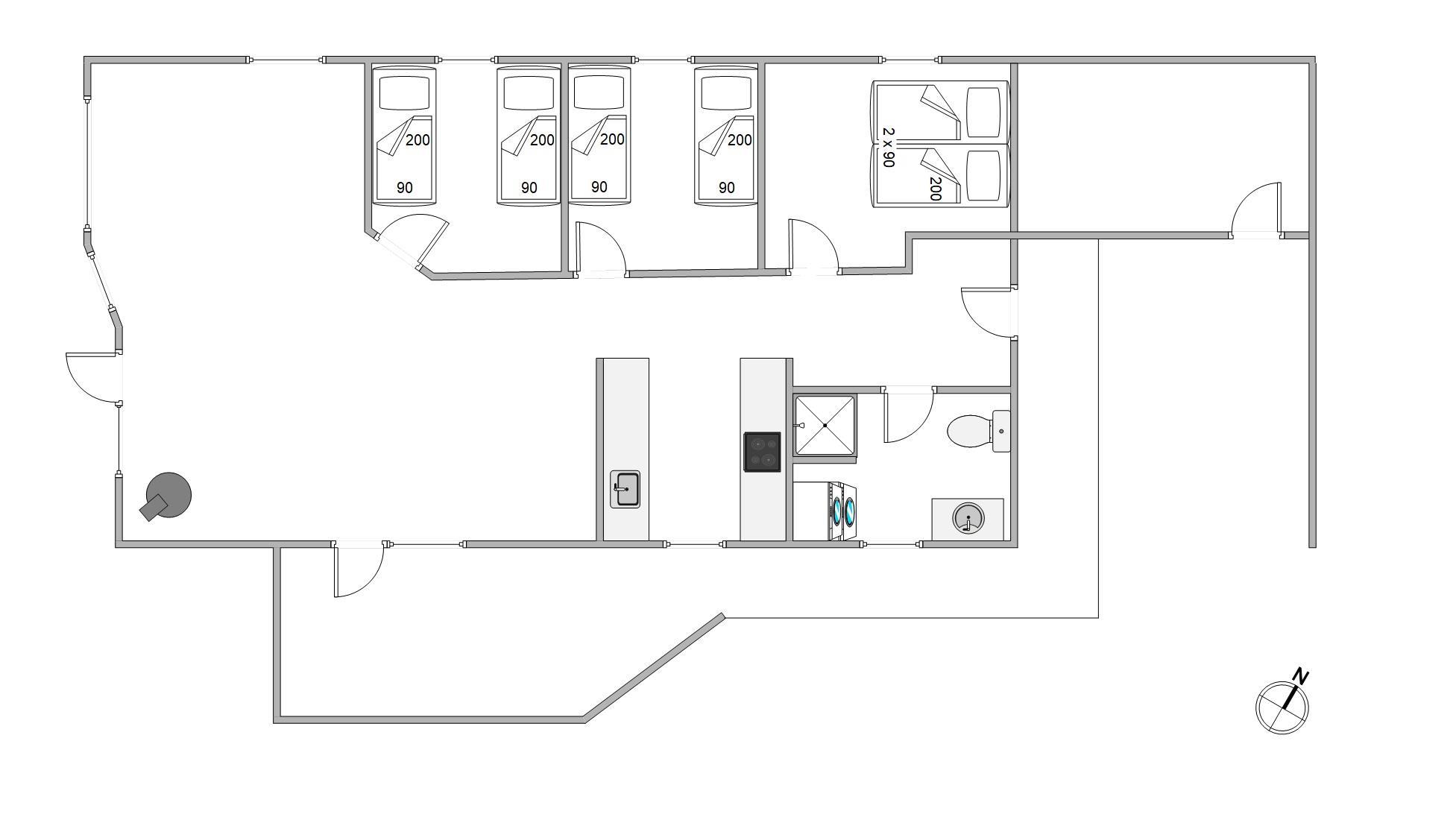 Feriehuset på Rømø ved Sønderstrand har plads til 6 feriegæster. Her er en gennemtænkt planløsning, som byder på 3 komfortable soverum, badeværelse med gulvvarme og ikke mindst det skønne køkkenalrum.
