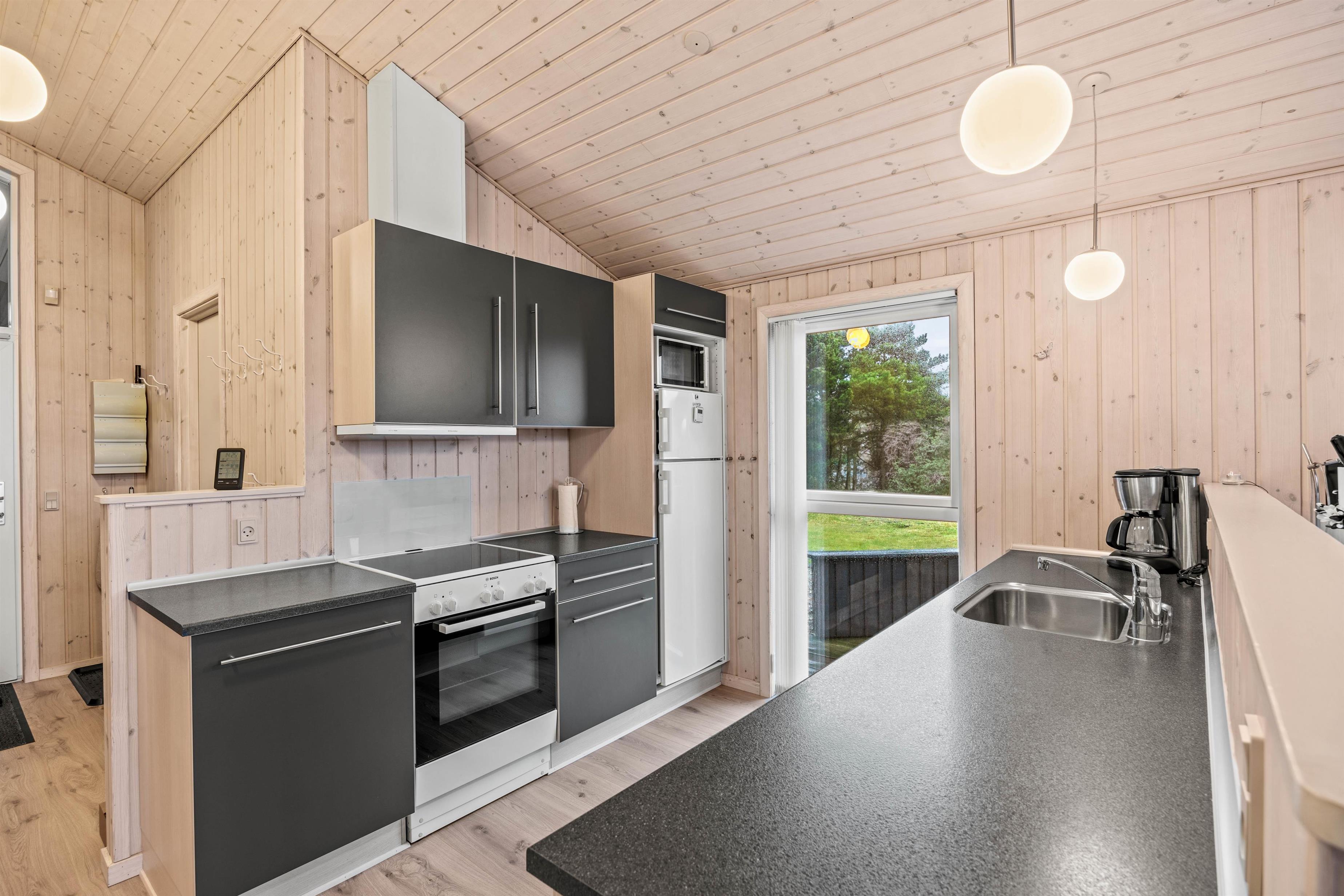 Praktisk er feriehuset udstyret med både opvaskemaskine og en energibesparende luft-til-luft varmepumpe, som sikrer jer et behageligt indeklima. Skønt er her også både vaskemaskine og tørretumbler.