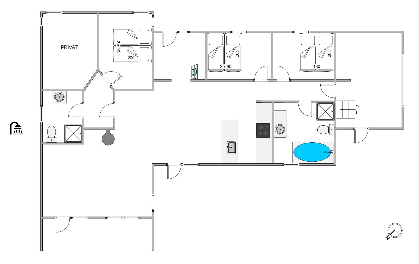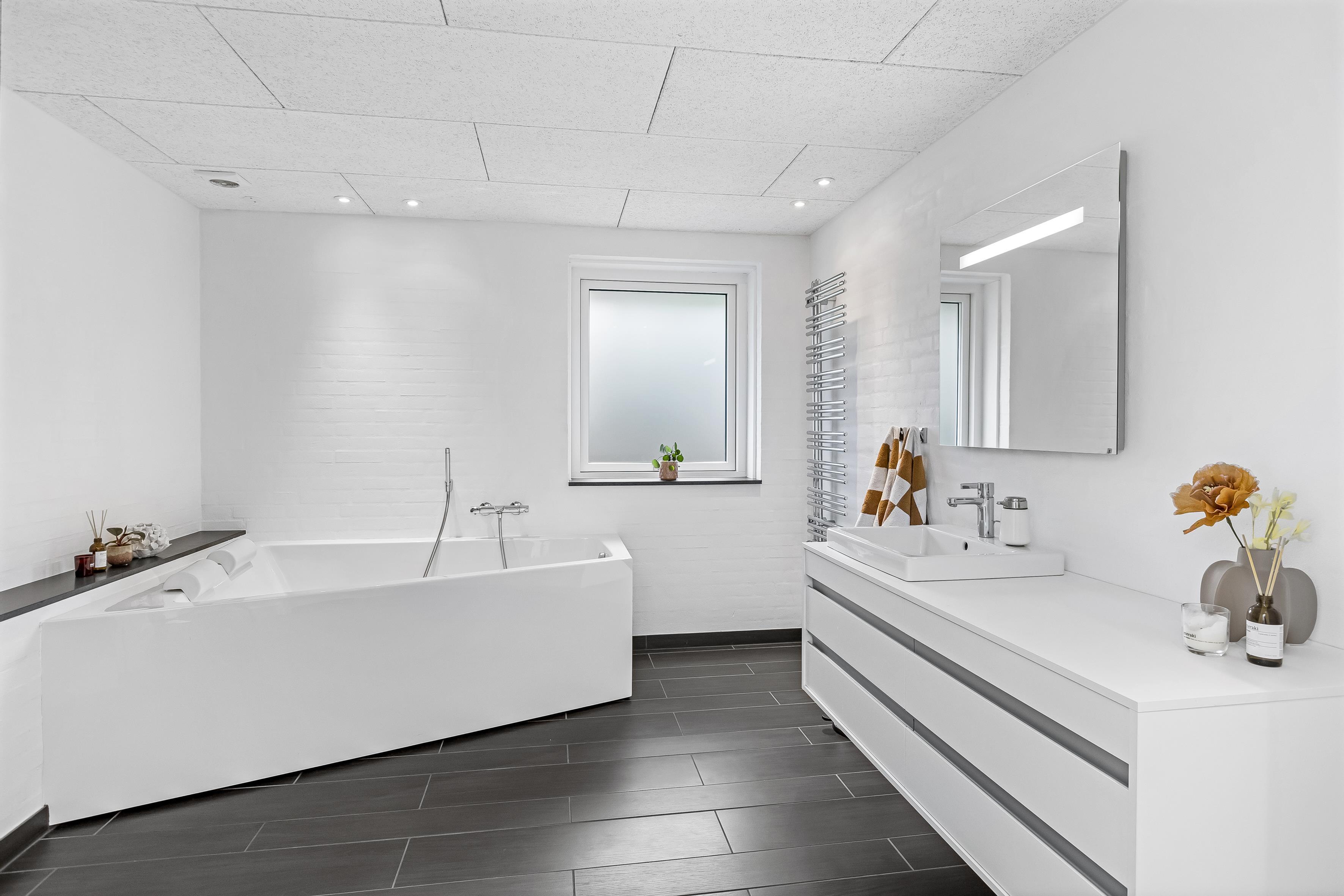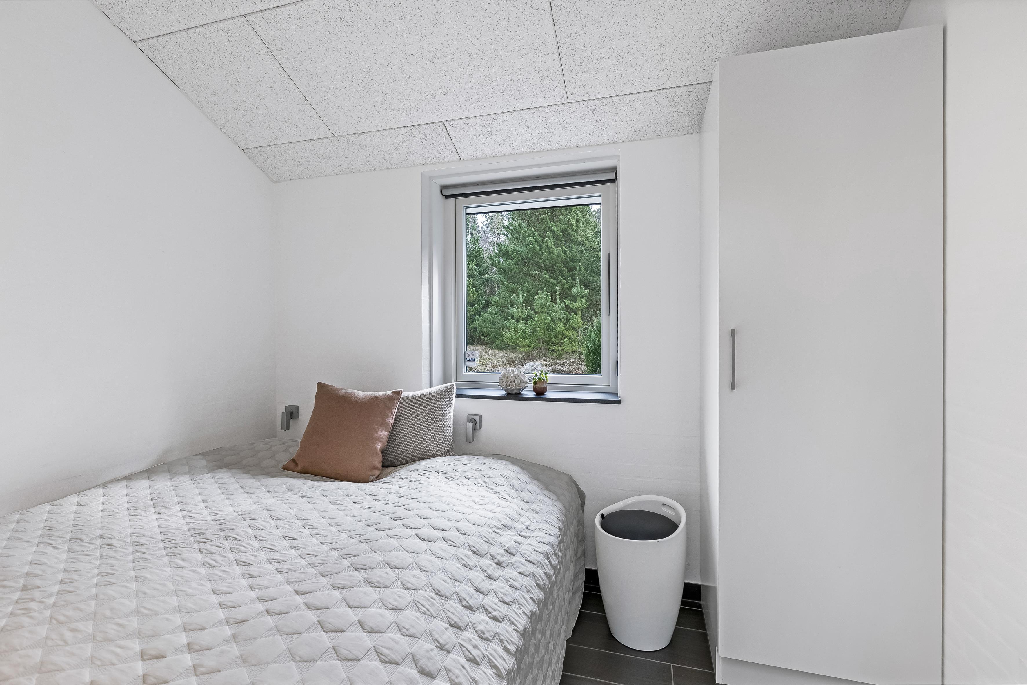 Sommerhuset har tre rummelige soveværelser med dobbeltsenge og skabe, hvilket giver god opbevaringsplads. Der er to stilfulde badeværelser, hvoraf det ene har badekar – perfekt til afslapning efter en dag ved stranden. De to badeværelser er designet med fokus på funktionalitet og velvære – gulvvarmen skaber en luksuriøs fornemmelse, der gør starten på dagen ekstra behagelig. Her sikres, at hver gæst kan få en god nats søvn og vågne op til en frisk og indbydende atmosfære.