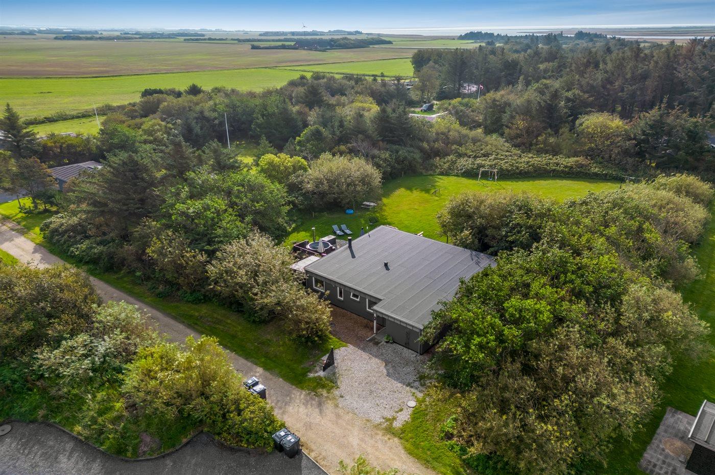 Ferieboligen er beliggende på en 2513 m² stor naturgrund. Grunden er indhegnet. Der er 1350 m til havet. Nærmeste forretning er beliggende i en afstand af 1200 m. Der er en golfbane i en afstand af 200 m. Til ferieboligen hører åbent terrasseareal. Der er redskabsrum. Gynge. Sandkasse. Parkering ved ferieboligen.