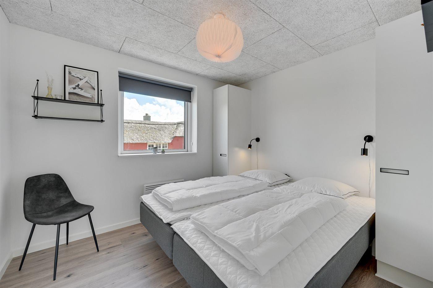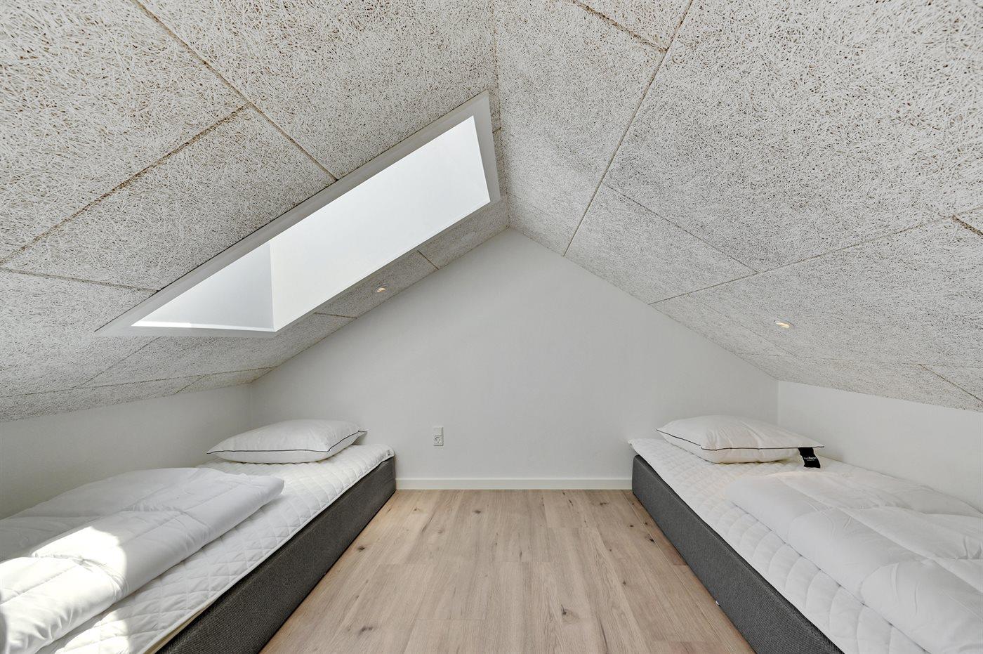 Der er i alt 4 soveværelser. Sovepladserne fordeler sig på: 6 sovepladser i dobbeltsenge. 4 sovepladser i enkeltsenge. 2 af disse sovepladser befinder sig på husets hems. Derudover er der 1 stk. barneseng.