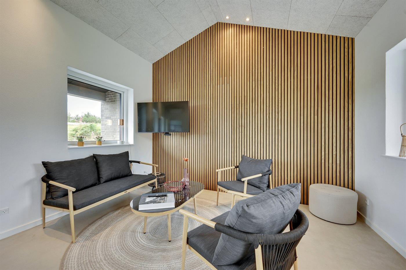 Et lækkert, nybygget sommerhus beliggende på en stor grund i gåafstand fra havet og Søndervig by.