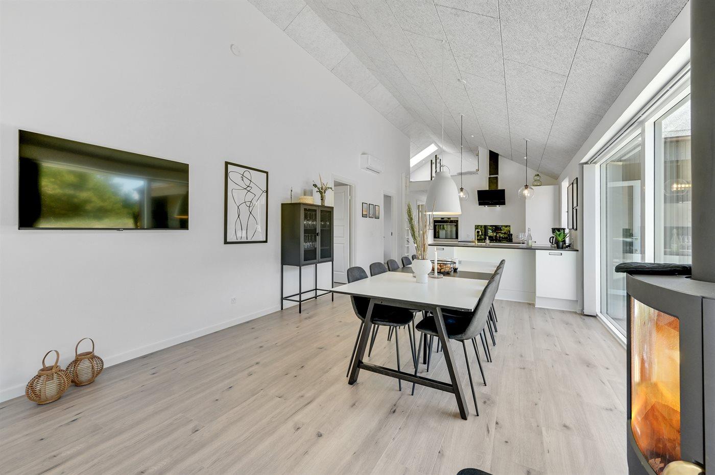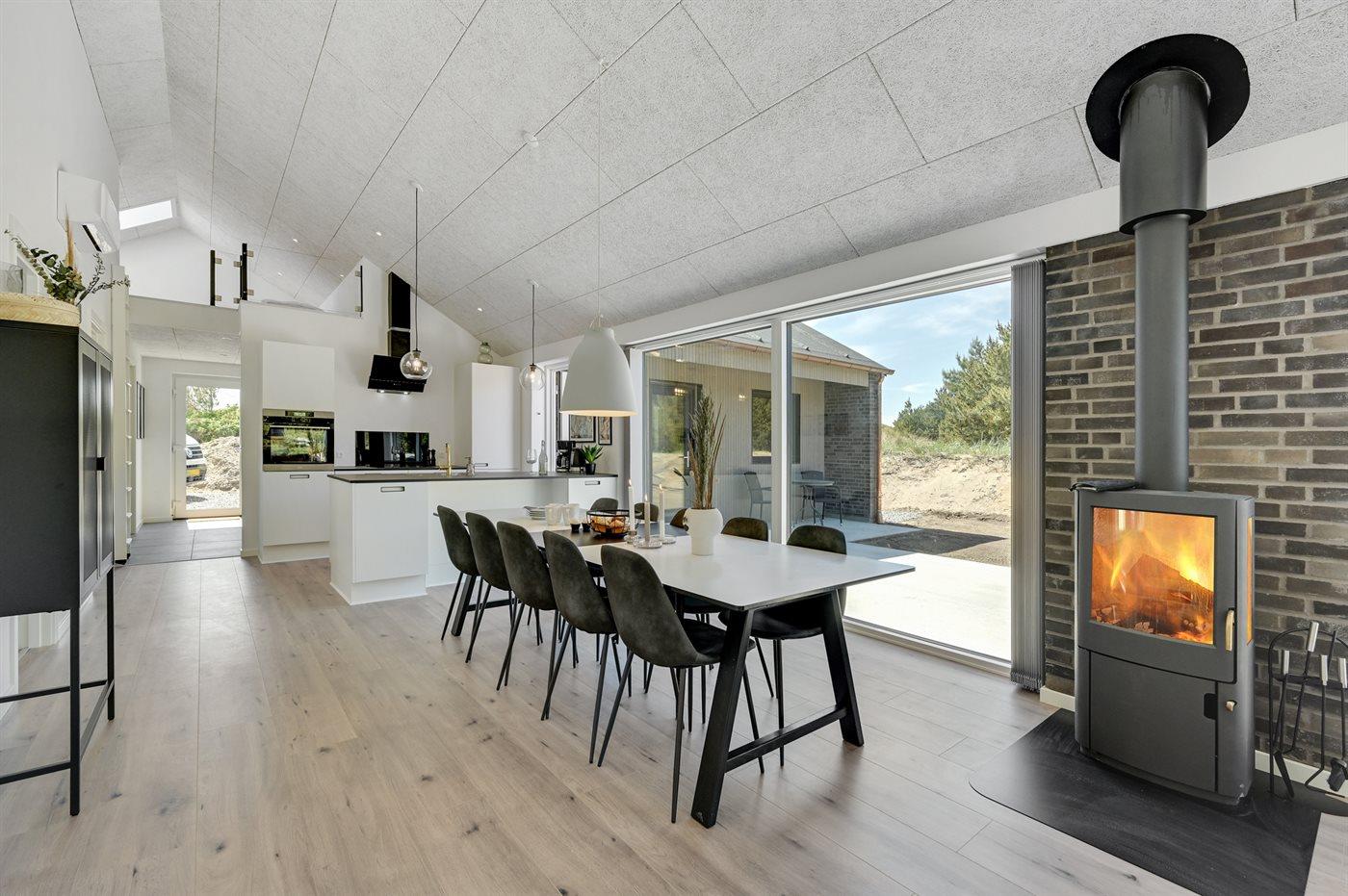 Sommerhuset egner sig til 10 personer samt 1 barn op til 3 år. Ferieboligen er på 155 m² og er bygget i 2022. Det er tilladt at medbringe 1 husdyr. Ferieboligen er udstyret med 2 energibesparende luft til luft varmepumper. Der er gulvvarme i alle klinkegulve. Ferieboligen har vaskemaskine. Frysekapacitet på 74 liter. Der er desuden brændeovn. Til de små er der 1 stk. barnestol.