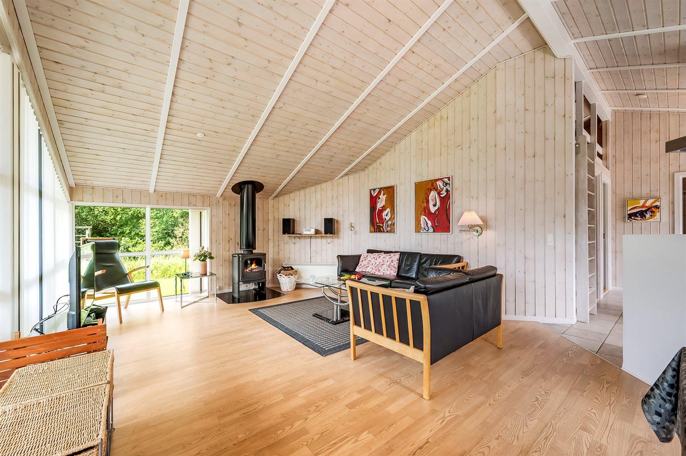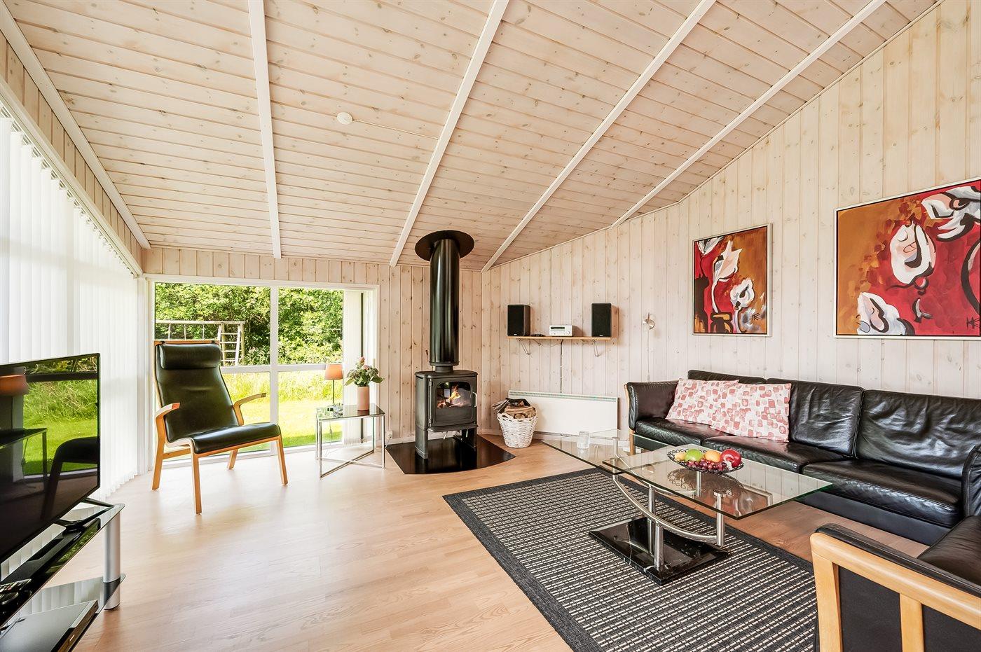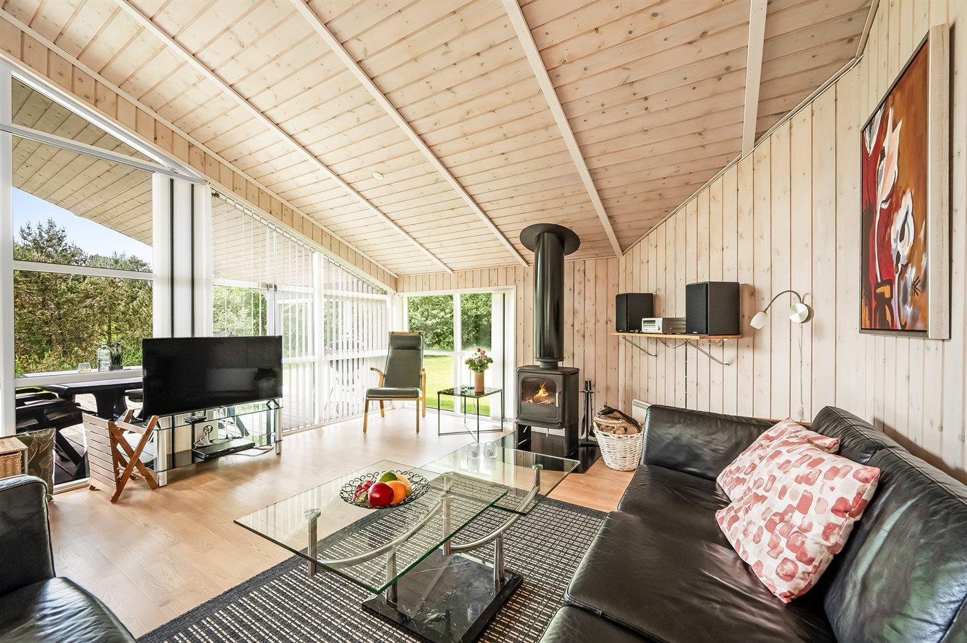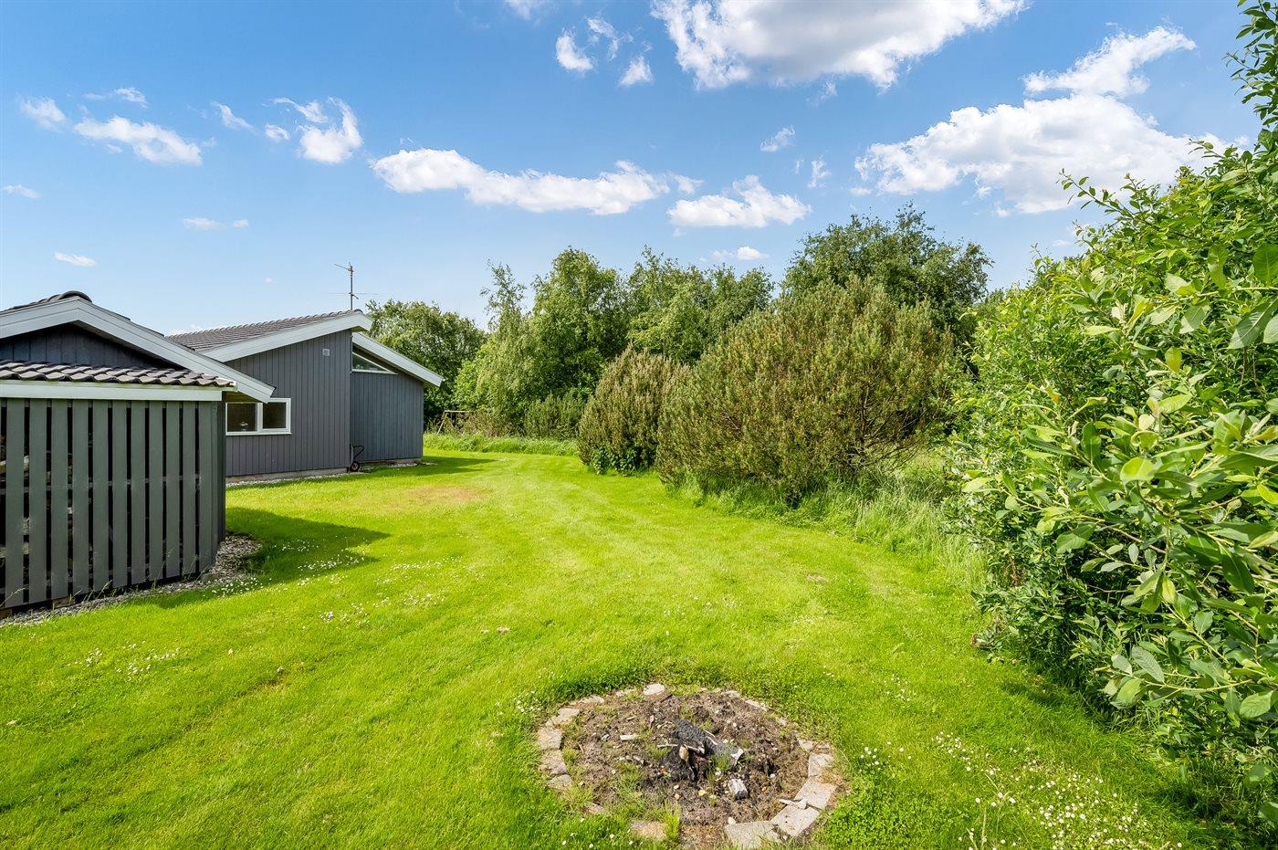 Ferieboligen er beliggende på en 2300 m² stor naturgrund. Der er 2000 m til havet. Der er 600 m til fjorden. Nærmeste forretning er beliggende i en afstand af 1000 m. Til ferieboligen hører 55 m² terrasseareal. Desuden er der 15 m² overdækket terrasse. Der er redskabsrum. Gynge. Sandkasse. Bålsted. Grill til rådighed. Parkering ved ferieboligen.